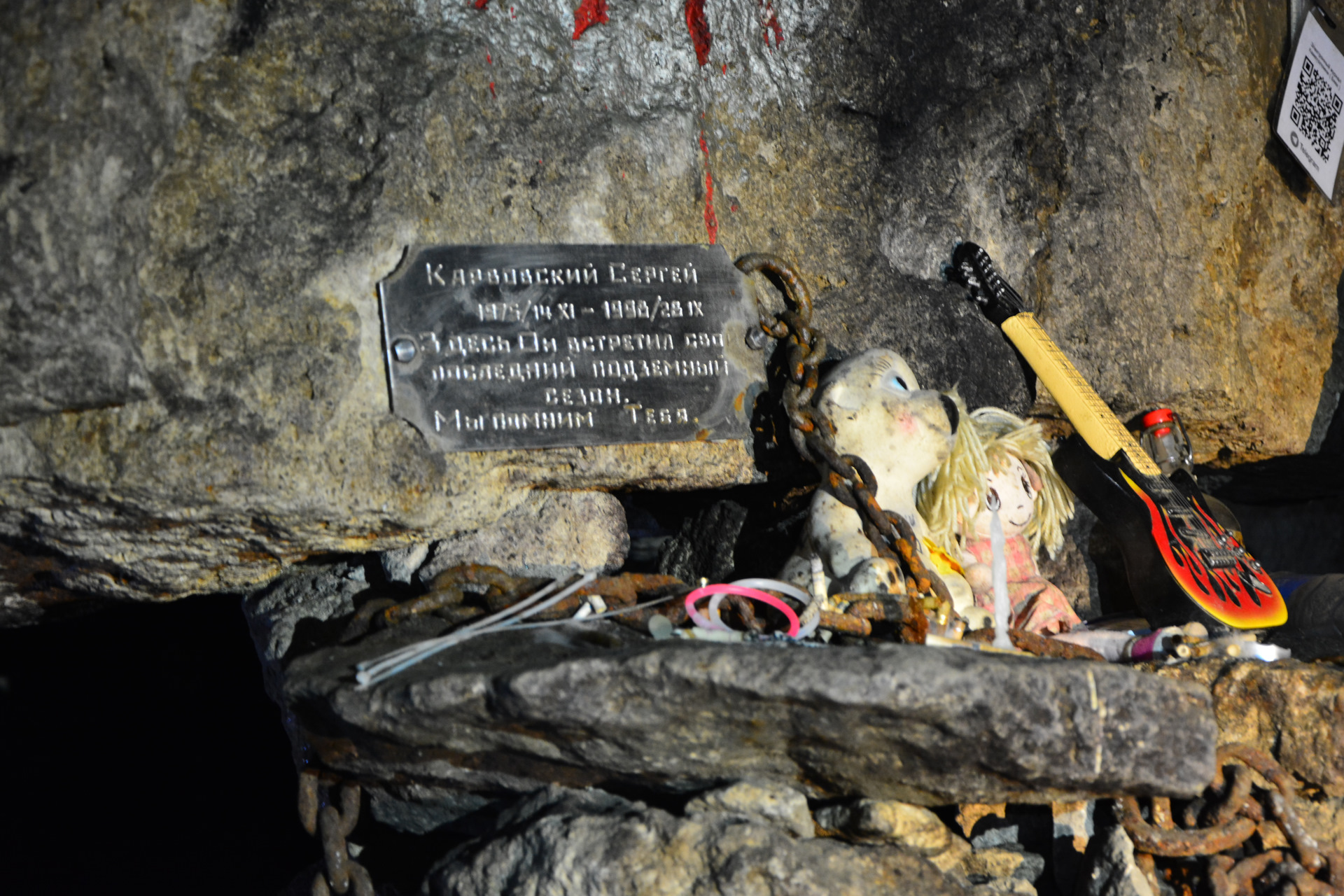 Следующий ориентир – Гук и табличка, посвященная исследователю пещеры Сергею Карвовскому.