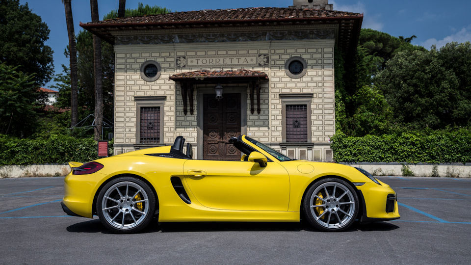 Итальянцы радуются спорткарам, даже если на их эмблемах гарцует не родной, а штутгартский жеребец. «Гас, гас, гас!», — наперебой кричит детвора, высыпавшая к стоянке перед кафе, куда заехала стайка Porsche. «Ну, извини», — улыбается тосканский дорожный рабочий, перекрывший нам серпантин для проезда встречных. Газую в нейтрали, он смеётся. До сих пор у родстера серии 981 были версии Boxster, Boxster S и GTS. Spyder, на котором я и упёрся в перекрытие, — самый мощный и самый лёгкий в гамме.