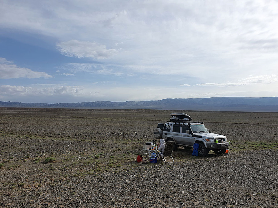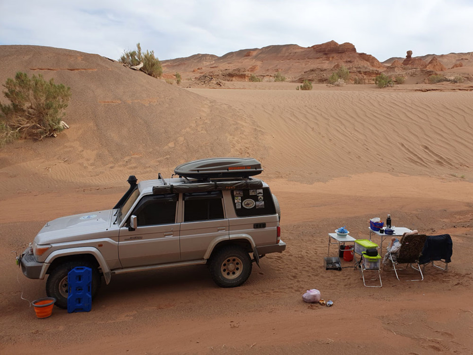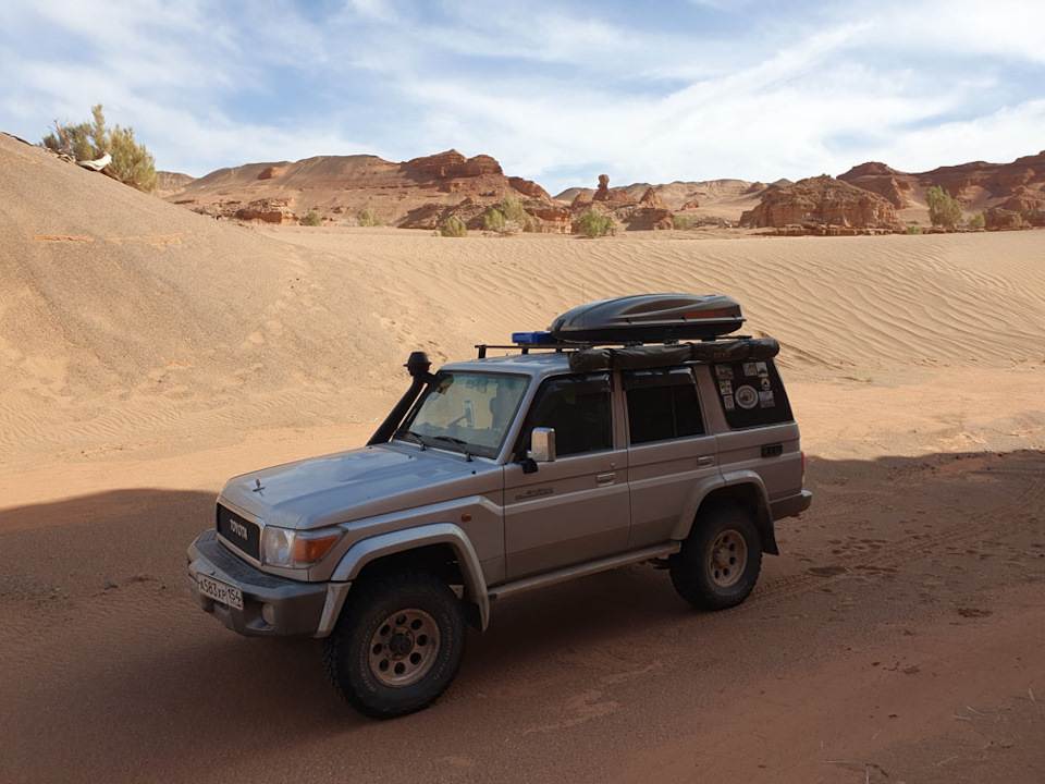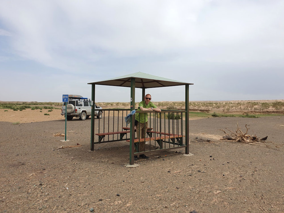 На следующий день доезжаем до селения Шинэжинст. Ночуем в его окрестностях. Утром заправляем полный бак, и все канистры водой. Нас впереди ждёт большая пустыня.