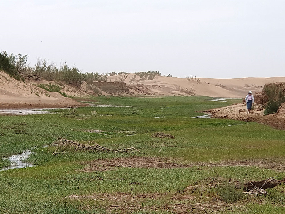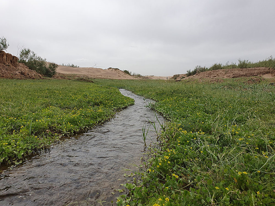 Среди бескрайних степей, покрытых песком и сухим саксаулом, вдруг возникает река, больше напоминающая ручей. Выходит она с песка, в песке и исчезает. Но в этом месте возникает жизнь.