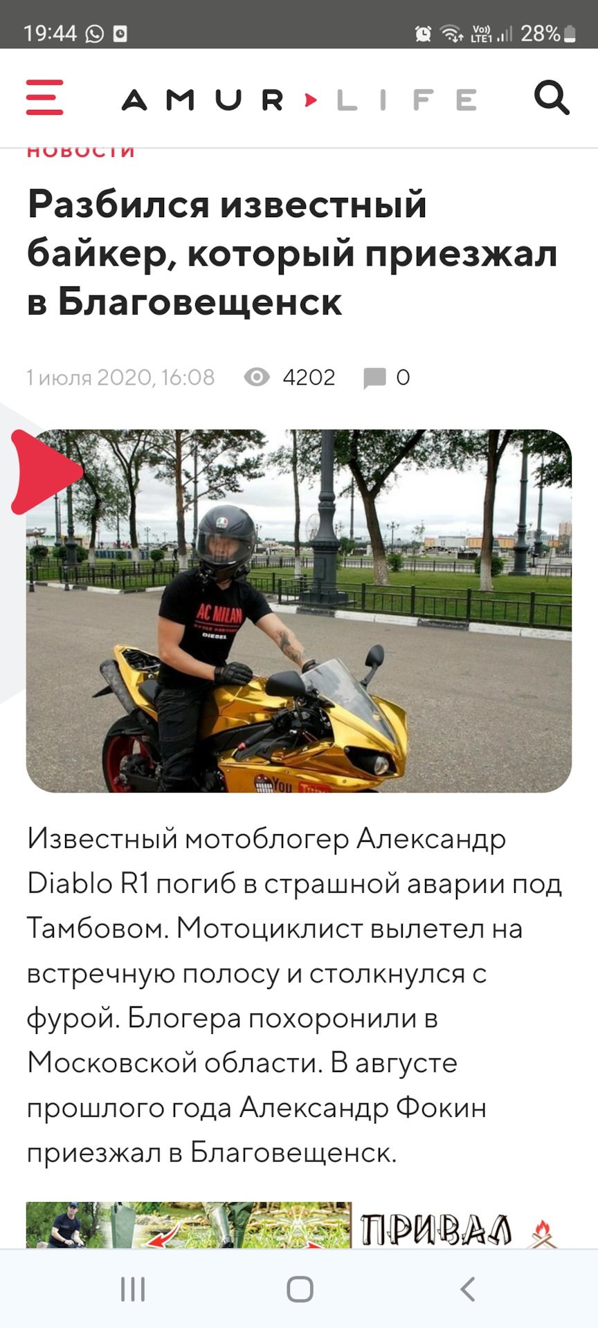 И вот как я вспомнил это тотподумал наверное какой то подражатель его ну как так от Москвы то Благовещенск очень далеко же. Но поискав в гугле информацию нашел что он ездил в путешествия до Владивостока. Ну и сравнив фотографии из интернета и свою увидел схожеть на левой руке татуировка и красные кроссовки и понял что это был он. Потом ещё нашел статью из Благовещенска что блогер который заезжал погиб. Очень жаль его хоть и много хэйта вылилось на него я посмотрел его ролики и скажу неплохой был человек очень доброжелательный. Родителям сил и не гоняйте, скорость убивает.