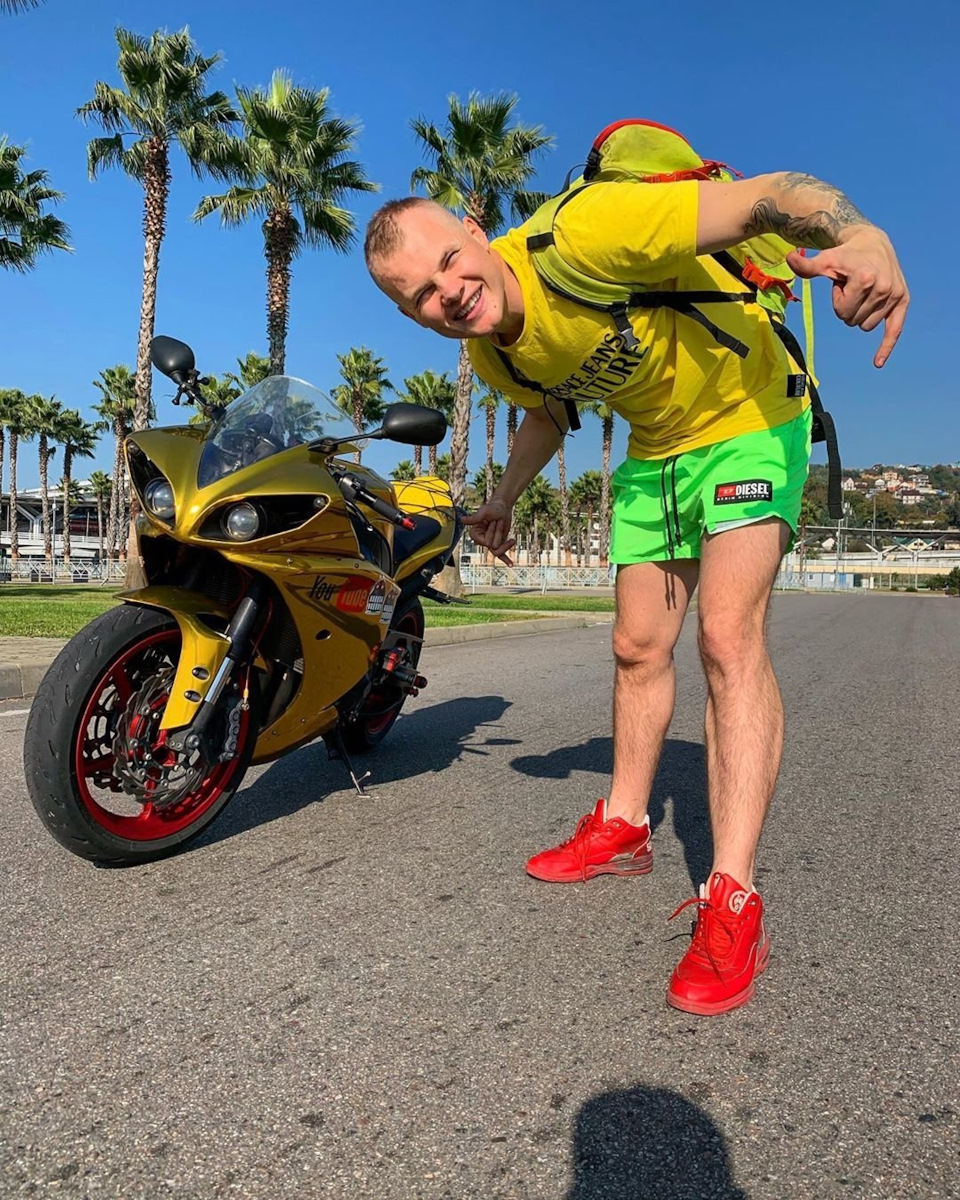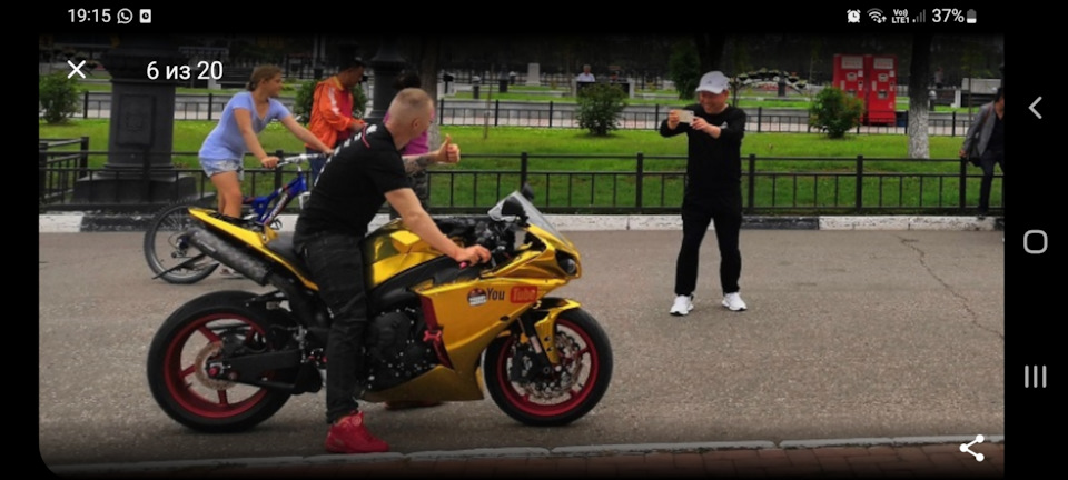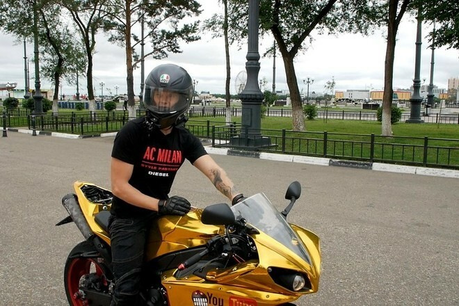 Совсем недавно узнал про такого блогера Диабло Р1 хотя он уже давно не с нами. Все из за постоянных смертей байкеров в данном случае МотоТани я начал смотреть видео про них. Узнал про ещё какого то Болта. И вот мне в ютубе в рекомендации попадаются видео с Диабло Р1. Смотрю я видео с ним а потом что то щелкает в голову что где то я такой байк золотистый с надписью YouTube видел уже. И сразу начинаю искать фотки, пока взял из инстаграмма но где то на ноуте наверняка есть ещё что то включая видео.