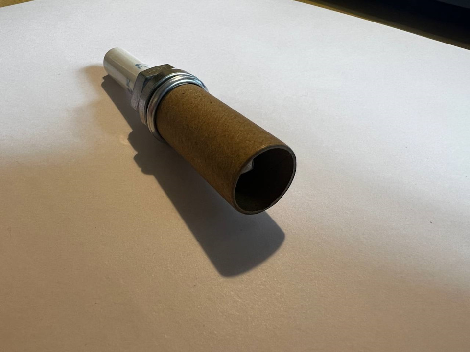 Признак подлинности №4 — защитный картонный колпачок закрывает резьбу полностью и не зафиксирован на ней жестко: