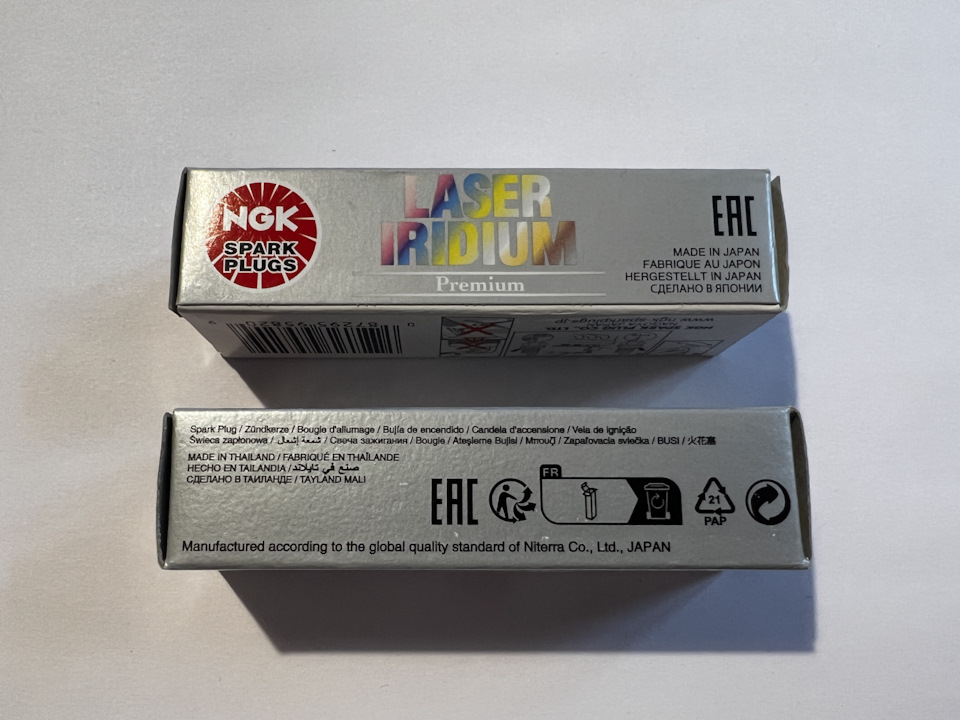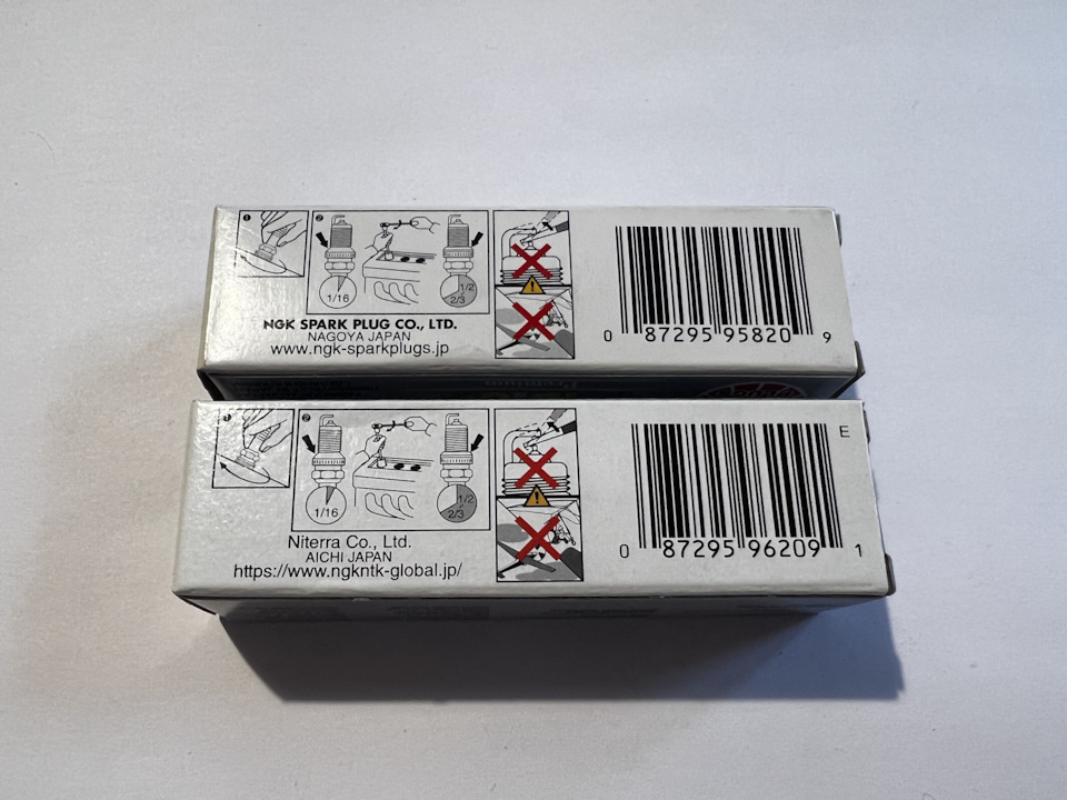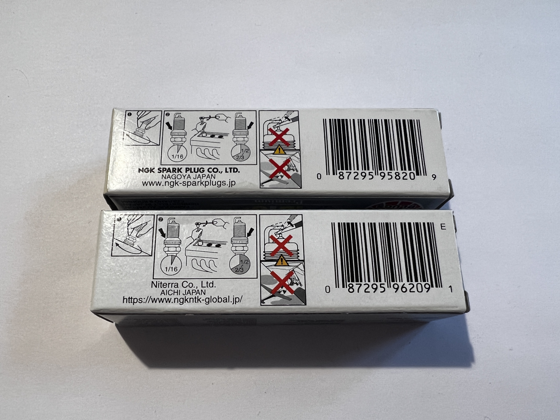 Важное примечание: с 2023 года у NGK поменялся дизайн упаковки свечей — надписи на индивидуальных упаковках свечей стали радужного, а не чёрного цвета, как это было раньше. Также сменилось название производителя: было NGK SPARK PLUG CO LTD, стало NITERRA CO LTD. На момент написания статьи (август 2024 года) подделки в основном встречаются в старом дизайне, но наверняка это дело времени.