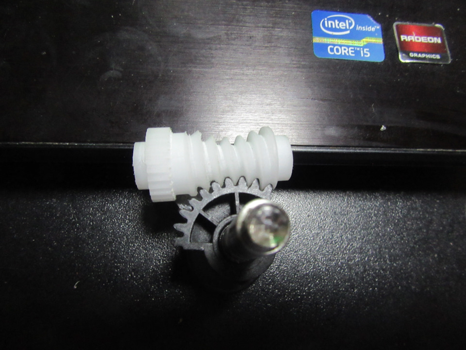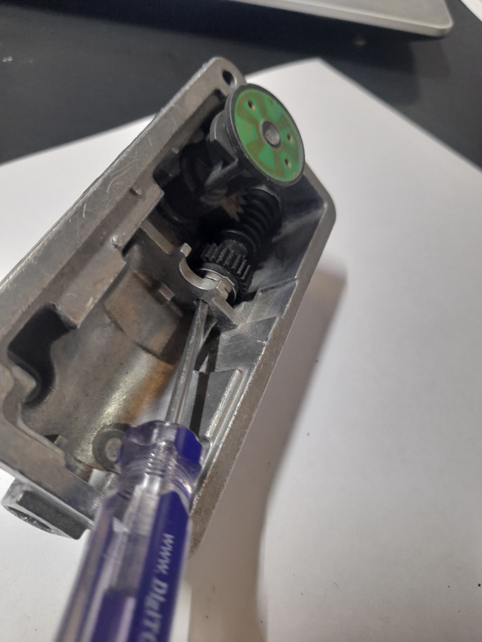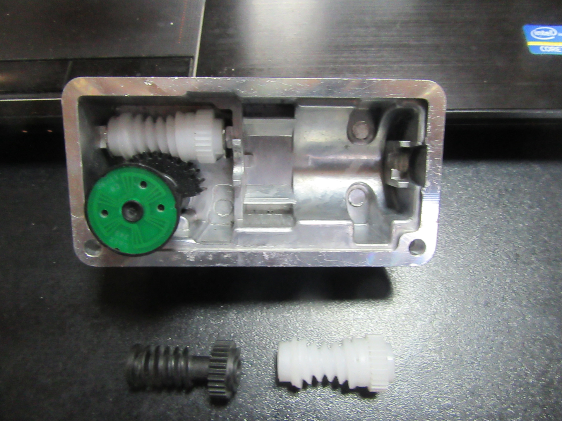 5.Вставляем правильную червячную шестерню и собираем обратно .Не смазываем! Вместо заглушки — герметик.