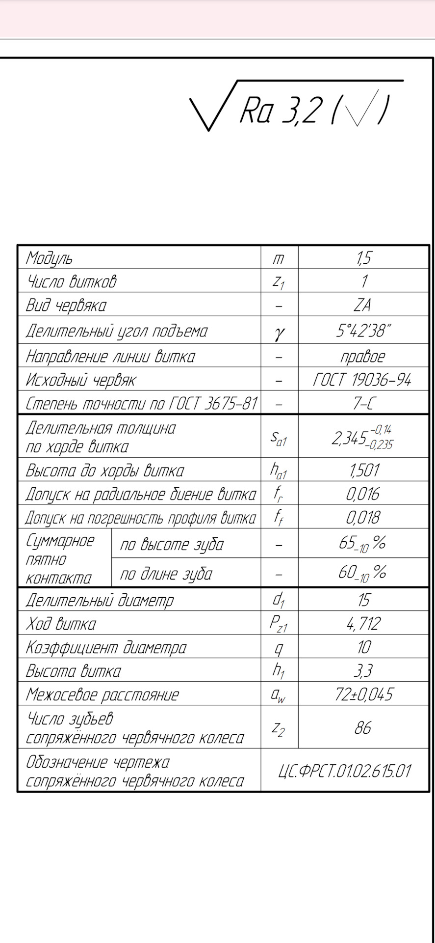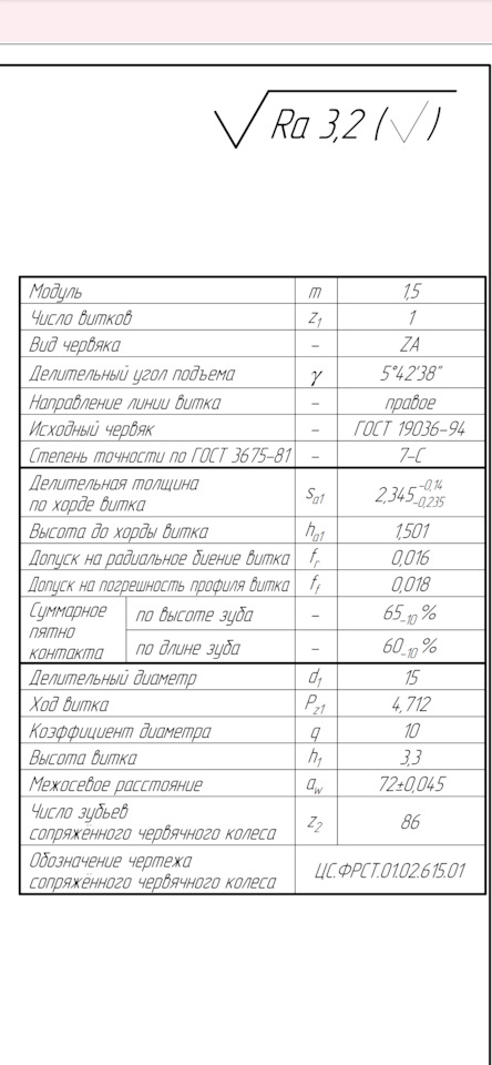 Вот к примеру таблица на червяк по 7 классу, это средняя точность. Допуск на хорде 0.095.