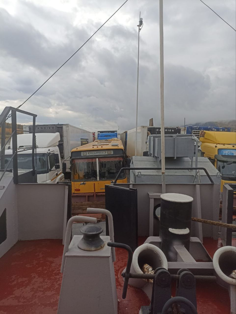 В Ленске «гармошку» погрузили на баржу до Усть-Кута: на этом отрезке пути варианта пройти по дорогам уже не предусмотрено. А Усть-Кут Иркутской области – это уже цивилизованная «большая земля», населённая людьми и связанная с остальным внешним миром уже нормальными дорогами – любая проблема, которая могла бы возникнуть с автобусом, здесь решалась бы намного проще. Погрузили Икарус на баржу в Якутии 22 сентября, а 27 сентября он сгрузился с баржи обратно на землю уже в Иркутской области.