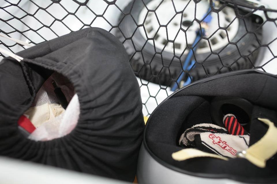 Есть и специальное место и для перевозки гоночных шлемов. Не держать же их штурману в руках, в то время когда они не нужны. Для этого в салоне, за сидениями вешается специальная сумка, куда с легкостью помещаются оба шлема. Это может быть сетка или мягкий короб. Удачи на трассах!