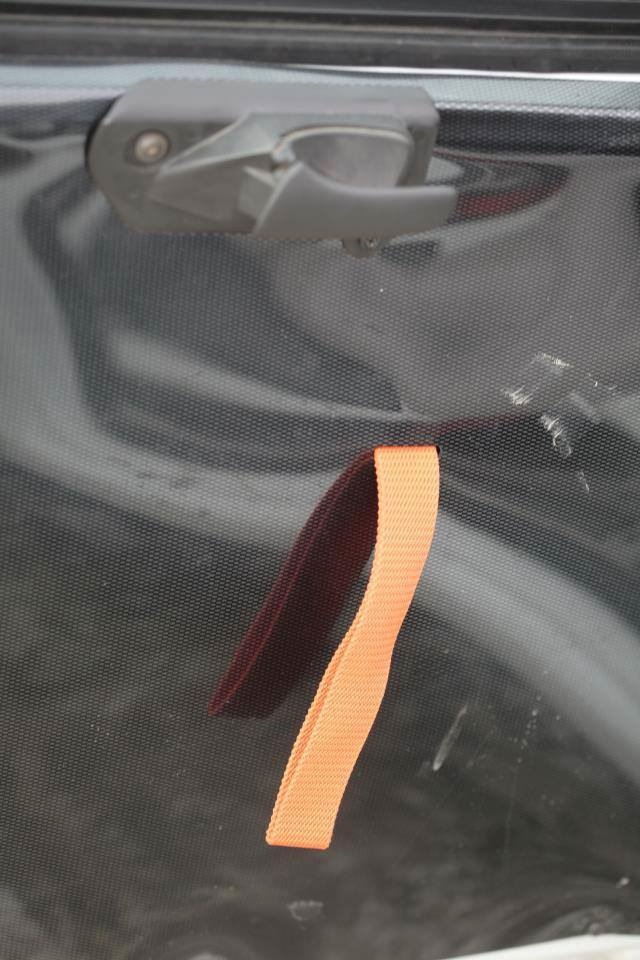 Стандартные обшивки дверей в салоне, обычно снимаются, на их место встают облегченные из пластика или легких металлов. Ручку для закрывания двери при этом, можно изготовить самому, например сделав вот такую петлю.