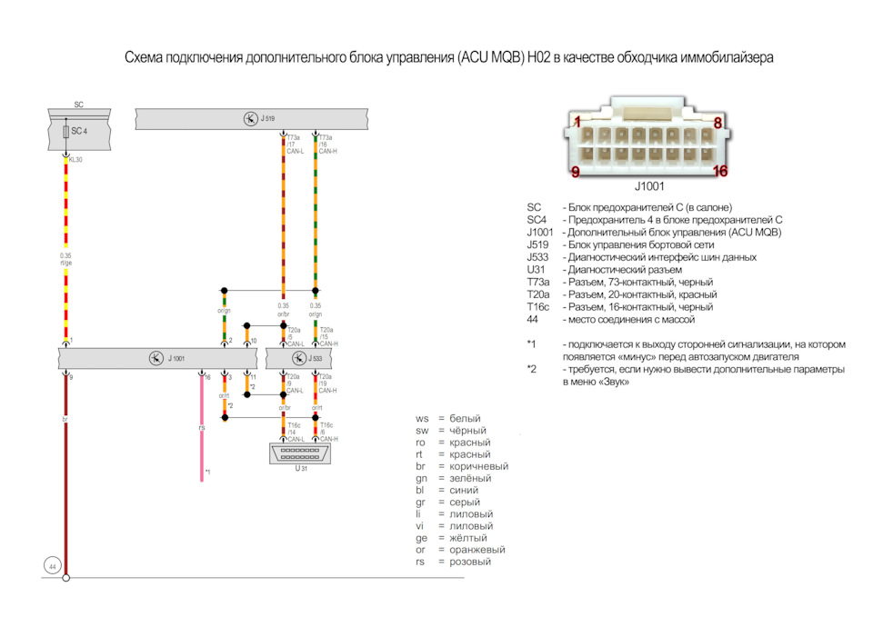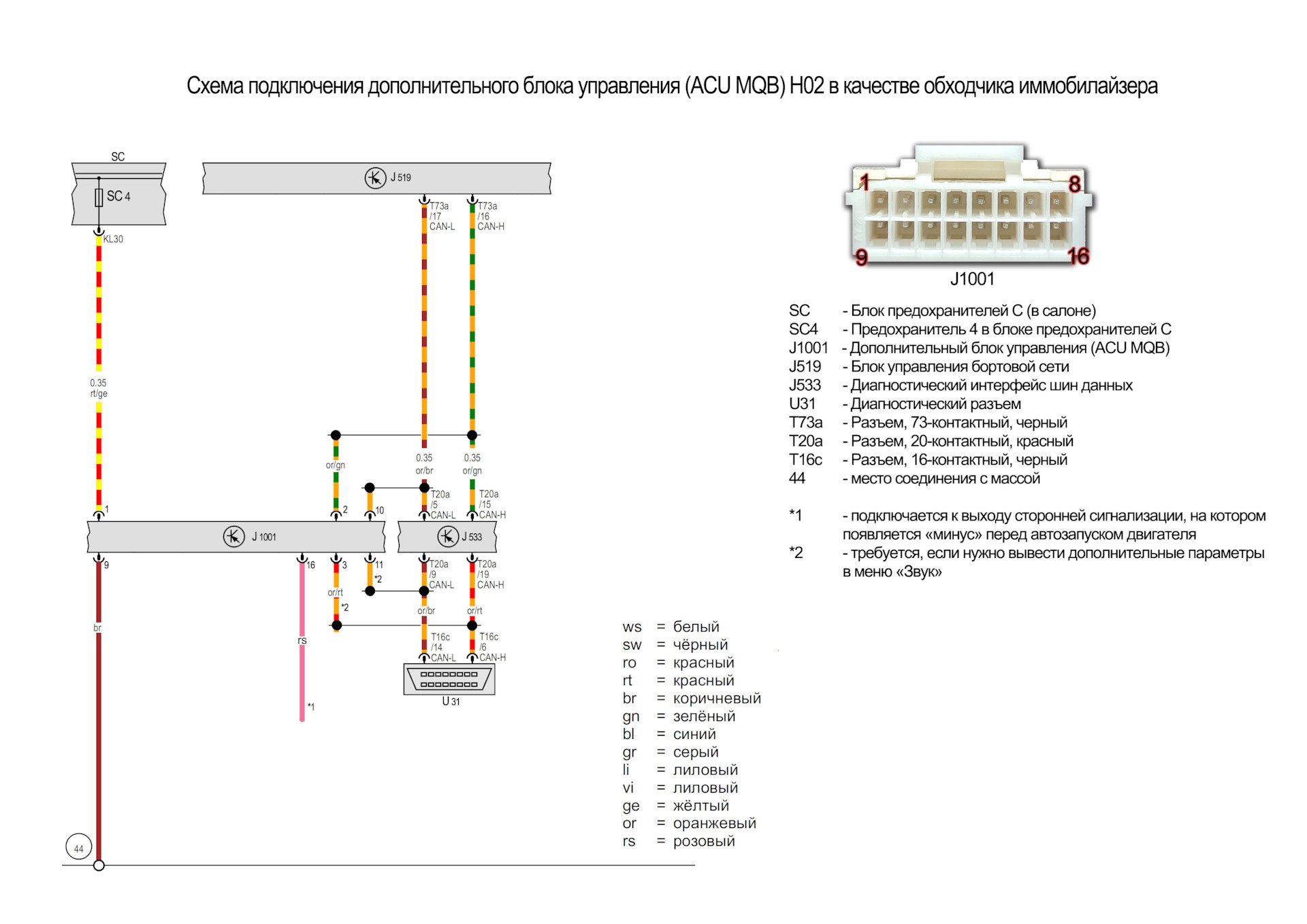 Остальные манипуляции делаются уже при установке блока ACU MQB по схеме