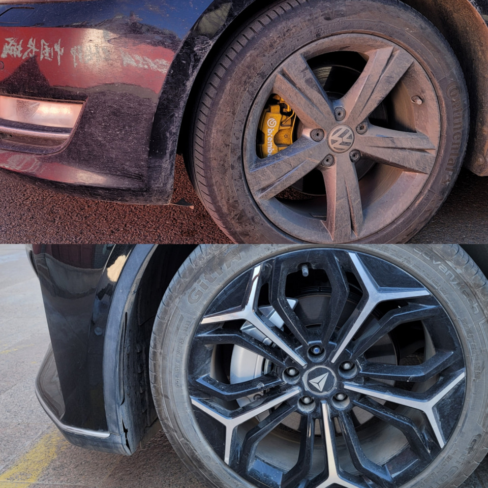 Снизу классика: накладки на суппорты чтобы сымитировать многопоршневые системы. Но владелец Пассата (сверху) пошёл ещё дальше и даже не стал ставить фейковые крышки, а просто нанёс логотип Brembo на корпус скобы суппорта. И так сойдёт!