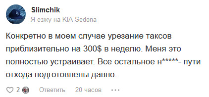 Конкретно в моем случае урезание таксов приблизительно на 300$ в неделю. Меня это полностью устраивает. Все остальное н*****- пути отхода подготовлены давно.