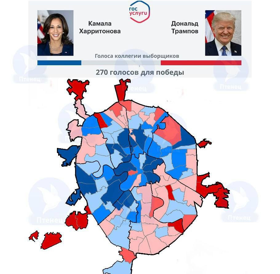 Калифорния конечно будет синей, а там 54 выборщика. Мой прогноз, Трамп выиграет с небольшим перевесом (типа 275-280 голосов). Людям нужно зрелище. Не зря возле Белого дома третье кольцо забора установили.
