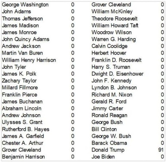 в истории США были 46 президентов и 91уголовных дел. распределены они следующим образом
