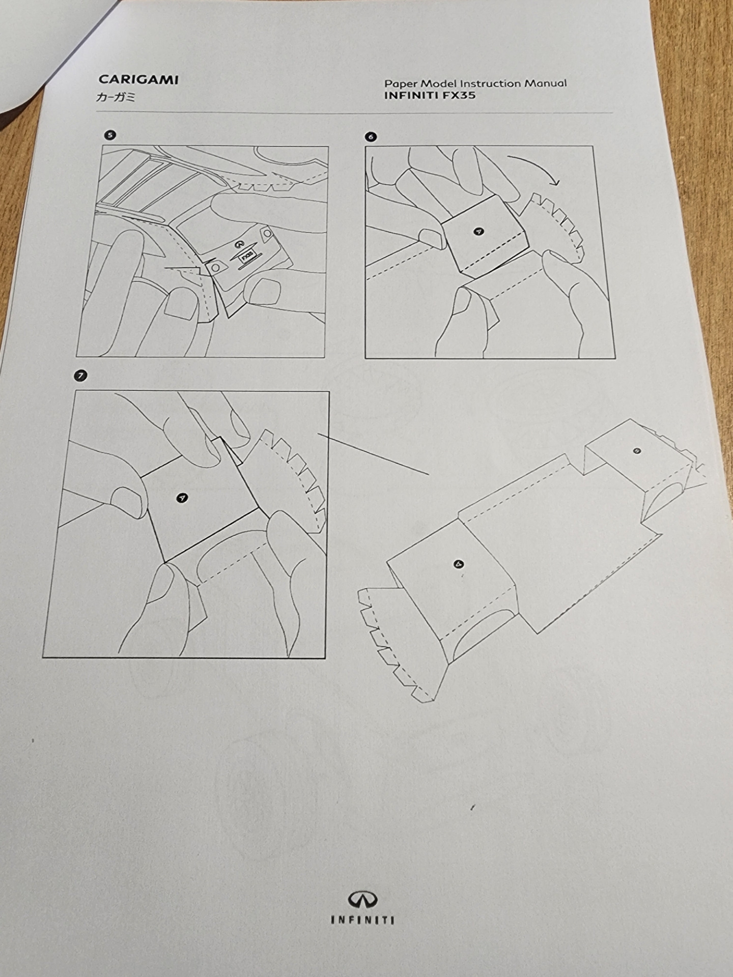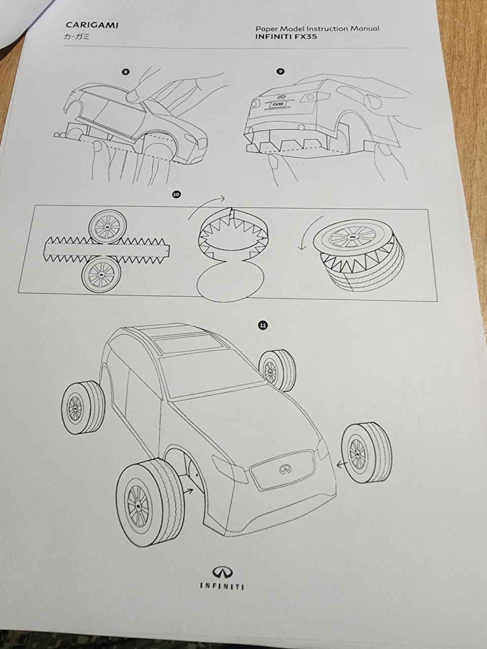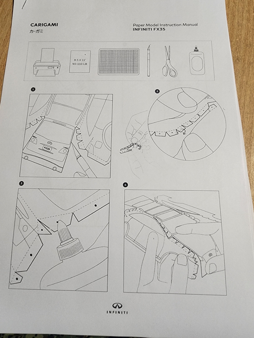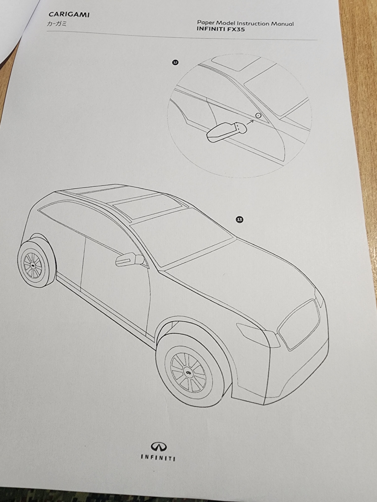 Решил найти масштабную модель, но в его цвете их нет. Наткнулся на D2 на ссылку на сайт INFINITI и скачал там модель для ручной сборки с инструкцией)