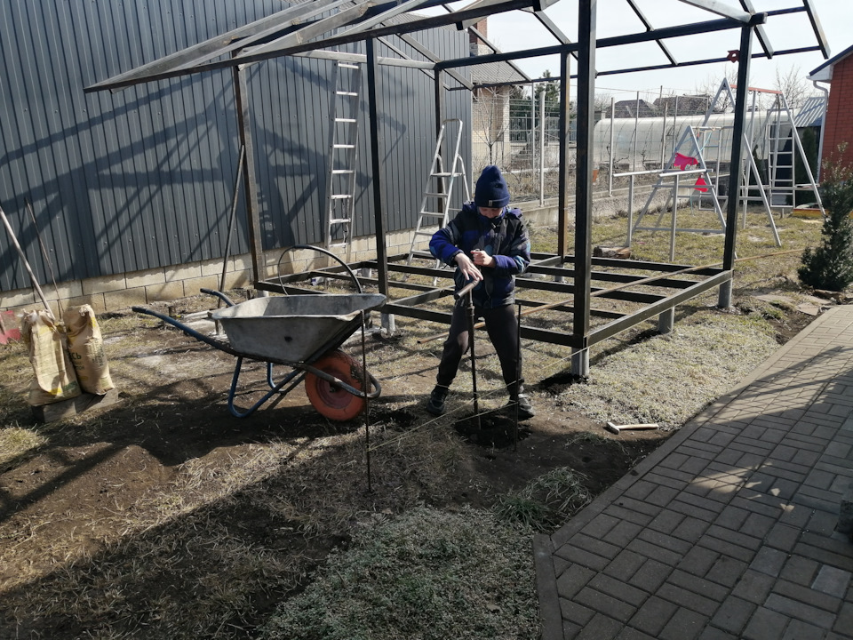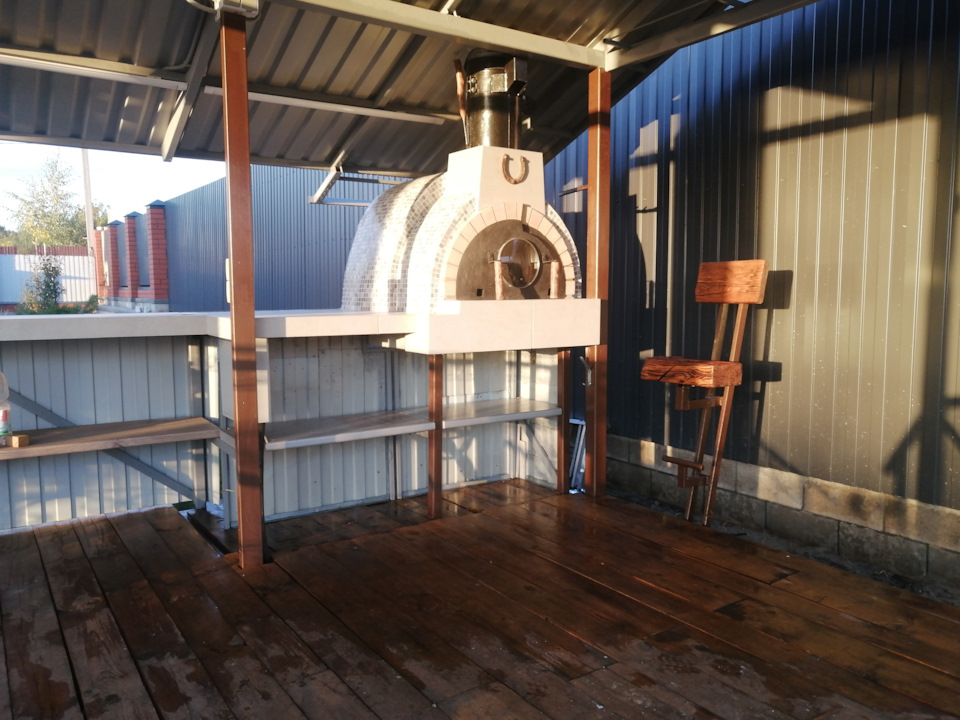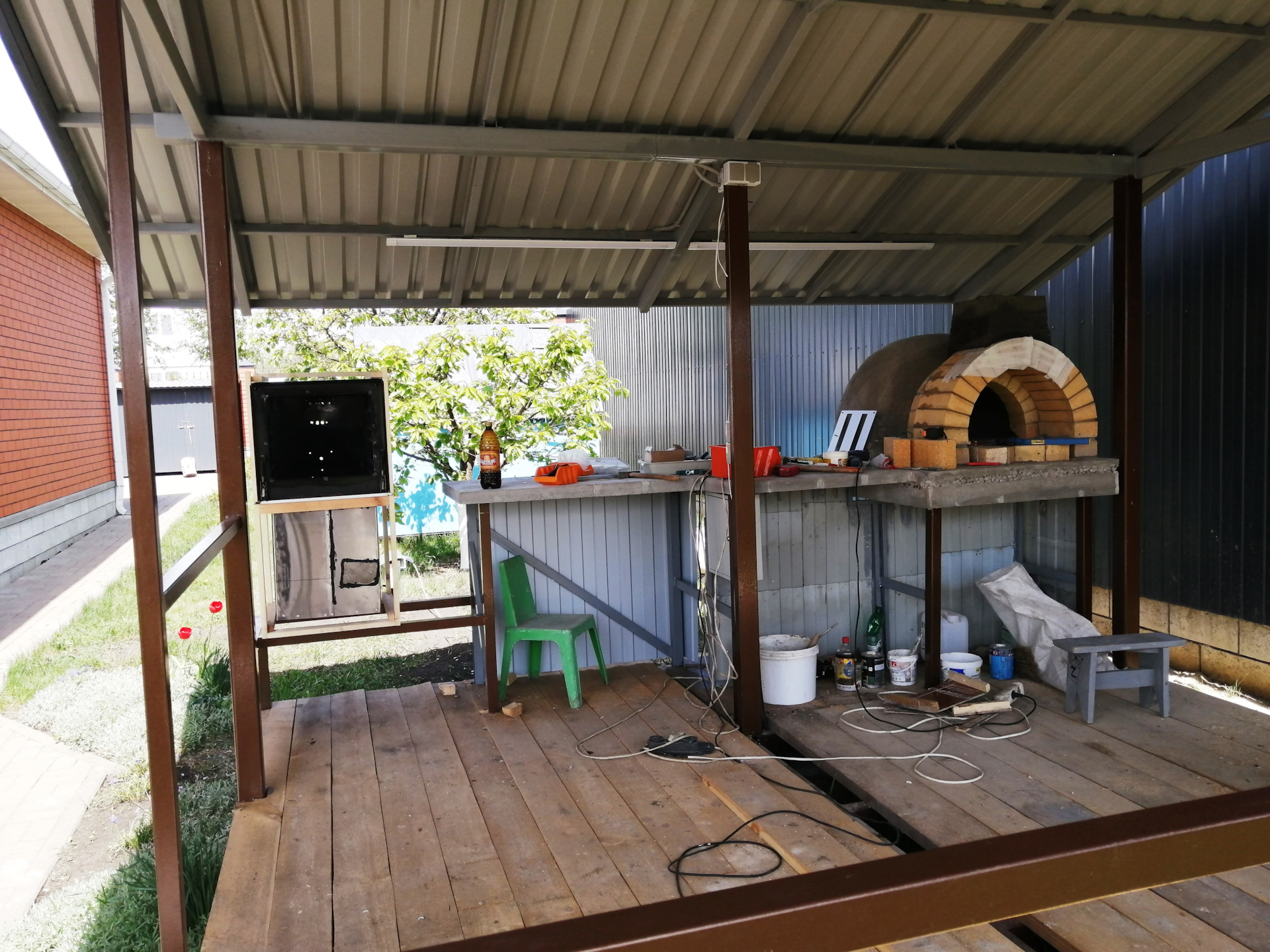 Пока строили стропилку, неясно было, что будет с площадкой рядом с помпейской печью. Озарение пришло позже. Тем более, желающий появился приобрети навыки бурения.