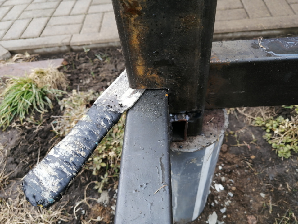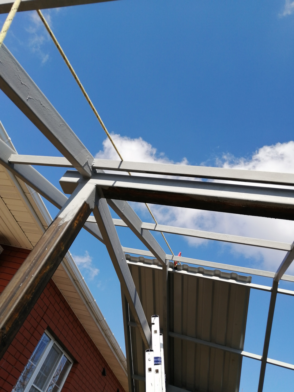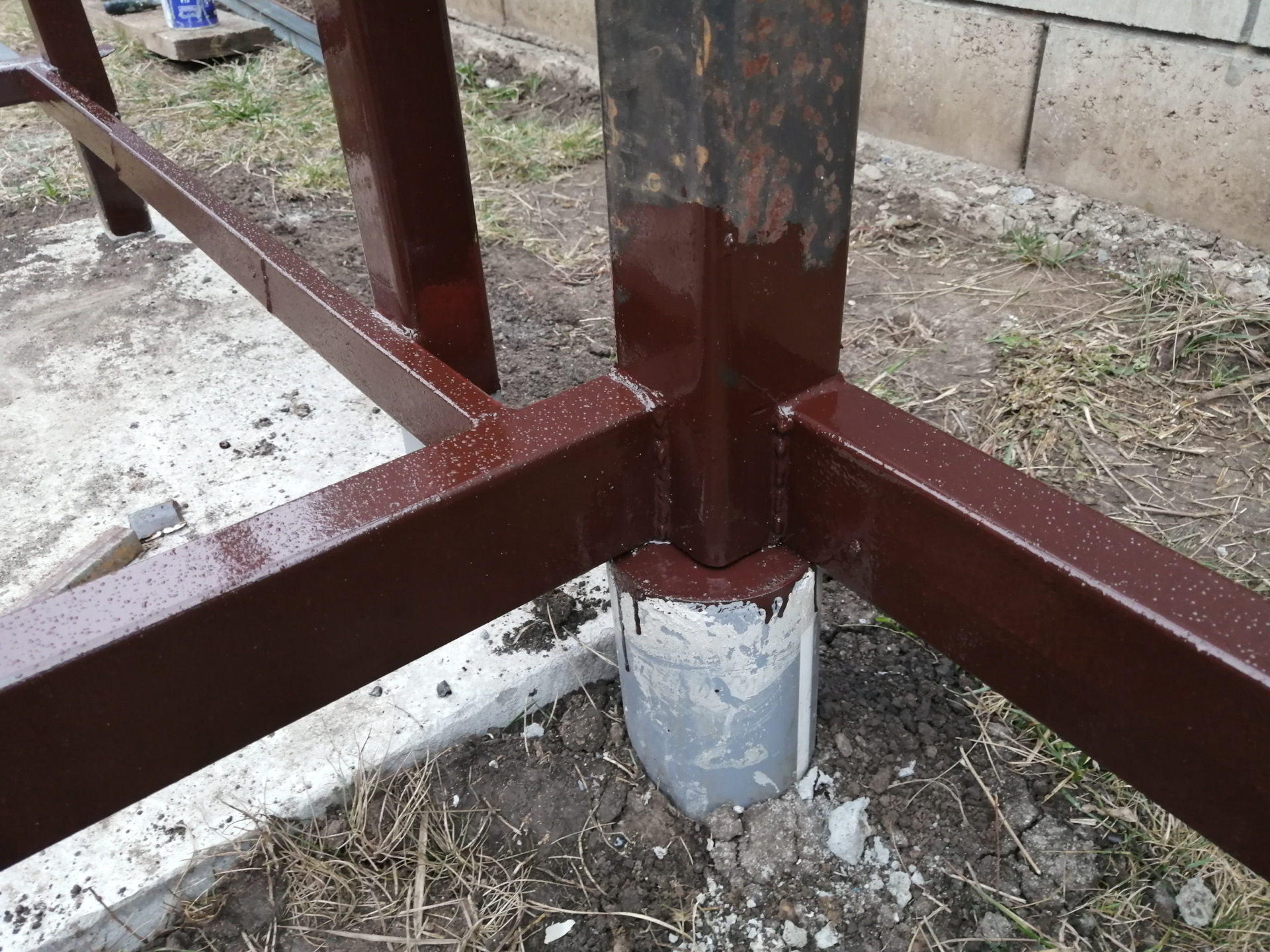 Зачищаю и грунтую места сопряжения. Крепление к фундаментным столбам.