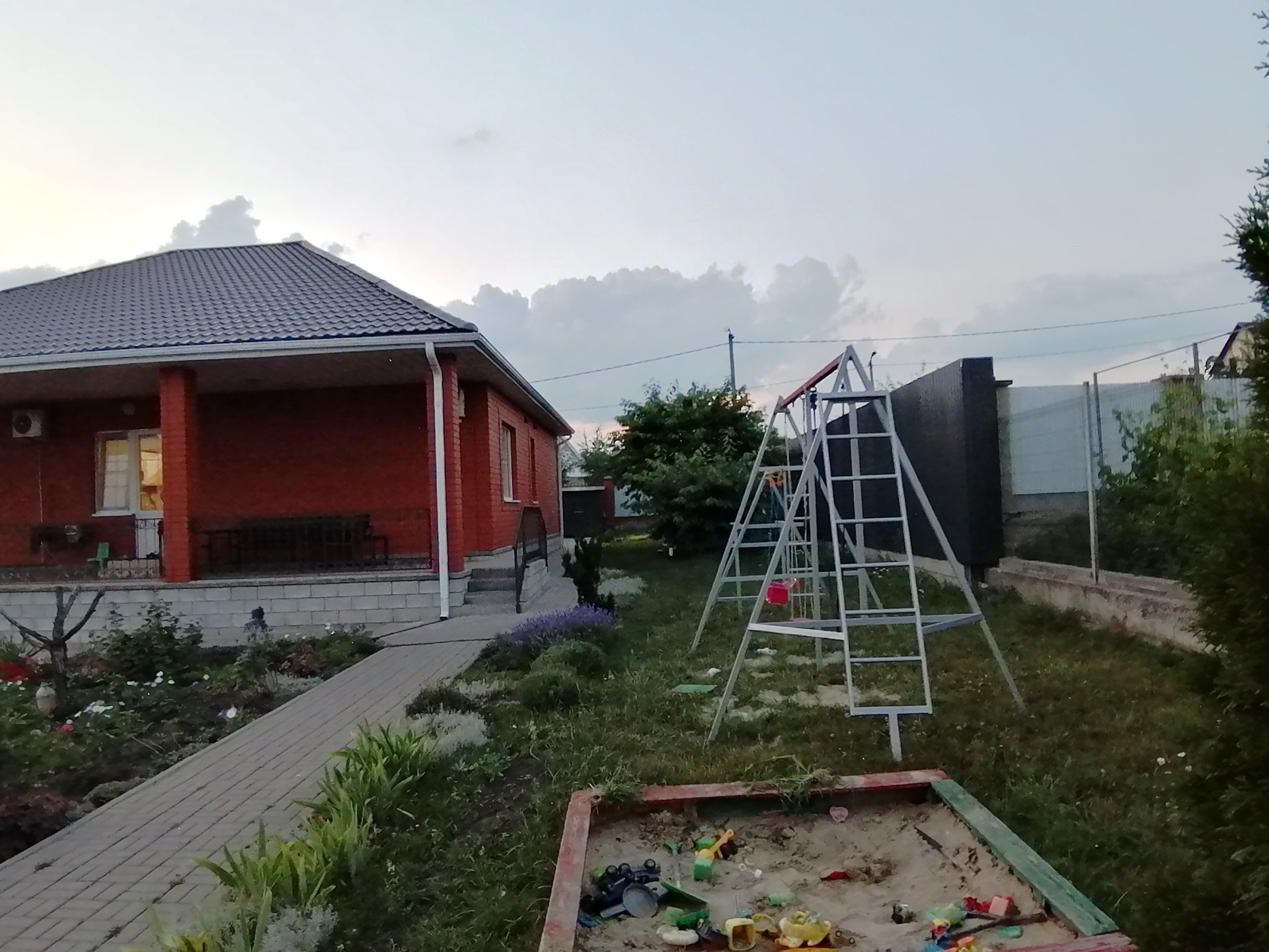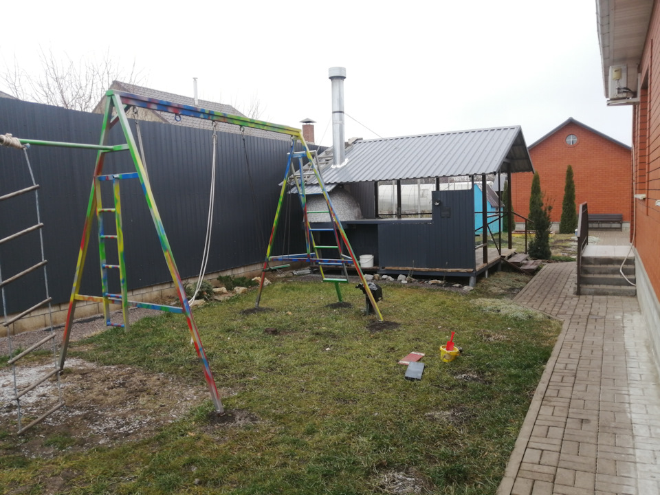 Зашиваю снаружи металлом в своем цвете. У меня везде металл накрытия ral 7024. Пришлось детскую площадку перенести и слегка модернизировать. Дети растут.