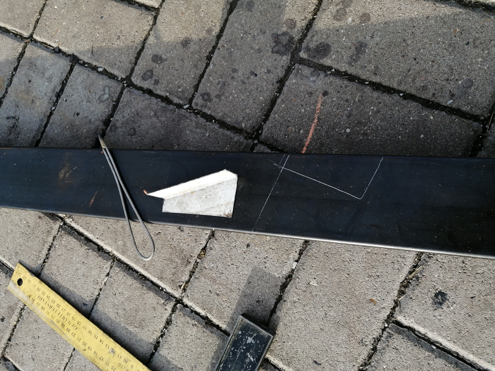 Из трубы 80х40 делаю стропила. Делаю шаблон из металла-легко чертилкой обводить. Чертилка на фото образца 1991 года. С момента моего знакомства с металлом. Нержавейка электрод 3мм с победитовой напайкой латунью от токарного резца. Точил один раз. При изготовлении.