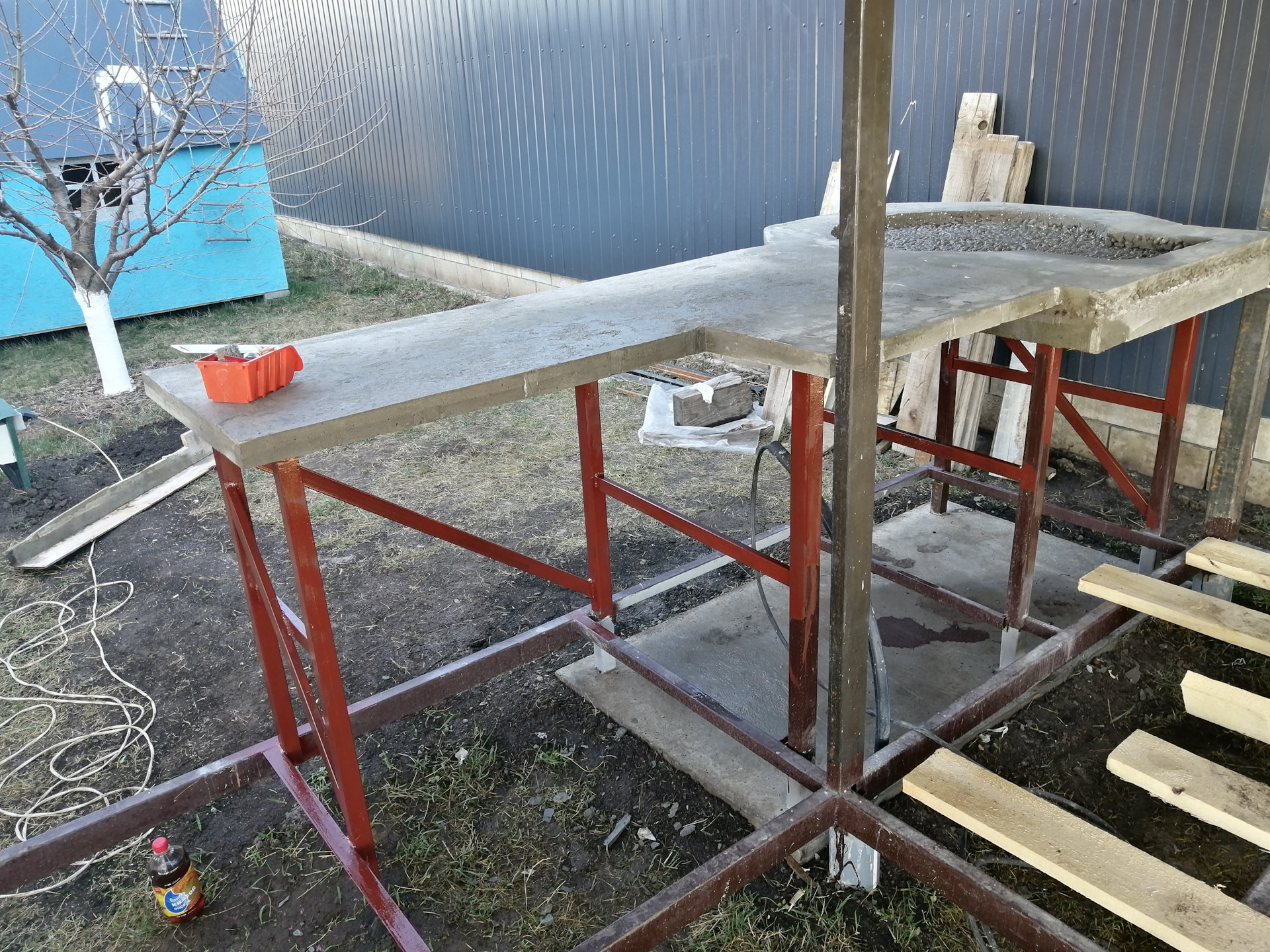 Разварил каркас. Поставил опалубку и забетонировал основание под помпейку и столешню.