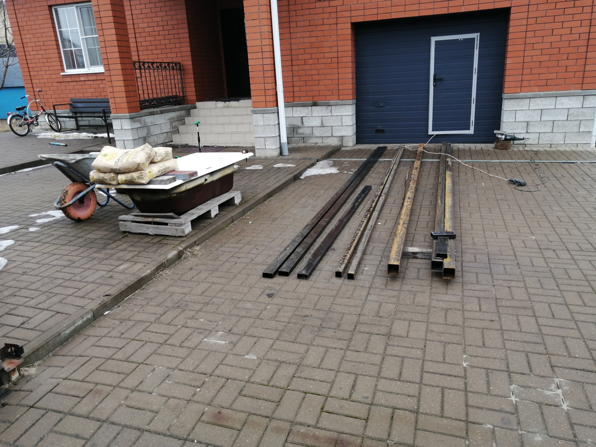 Дело за малым. Начать и построить. Весна 2024г. Закупил материалы. Проф. труба 80х40 на основание и стропила, на стойки 80х80, поперечины стропил 40х20, перила 40х40, канализационная труба, ЦПС М300, арматура.