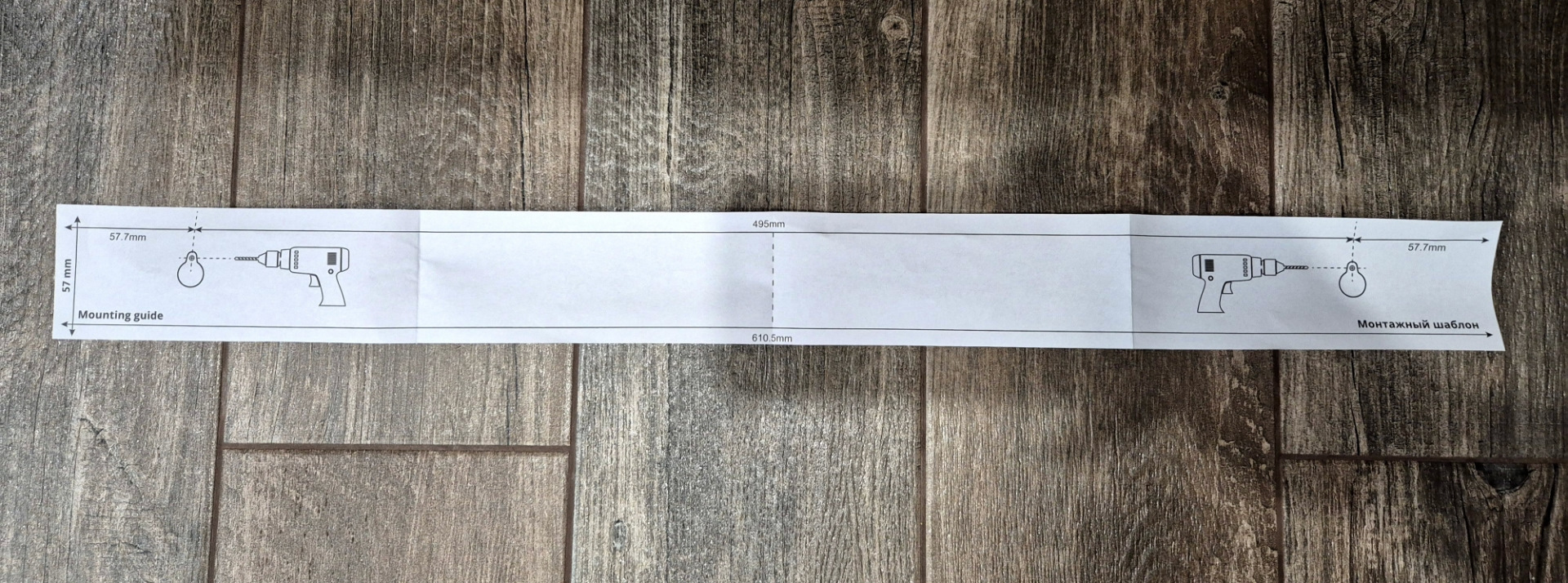 Также для удобства реализации данного способа размещения в комплекте имеется монтажный шаблон для разметки на стене