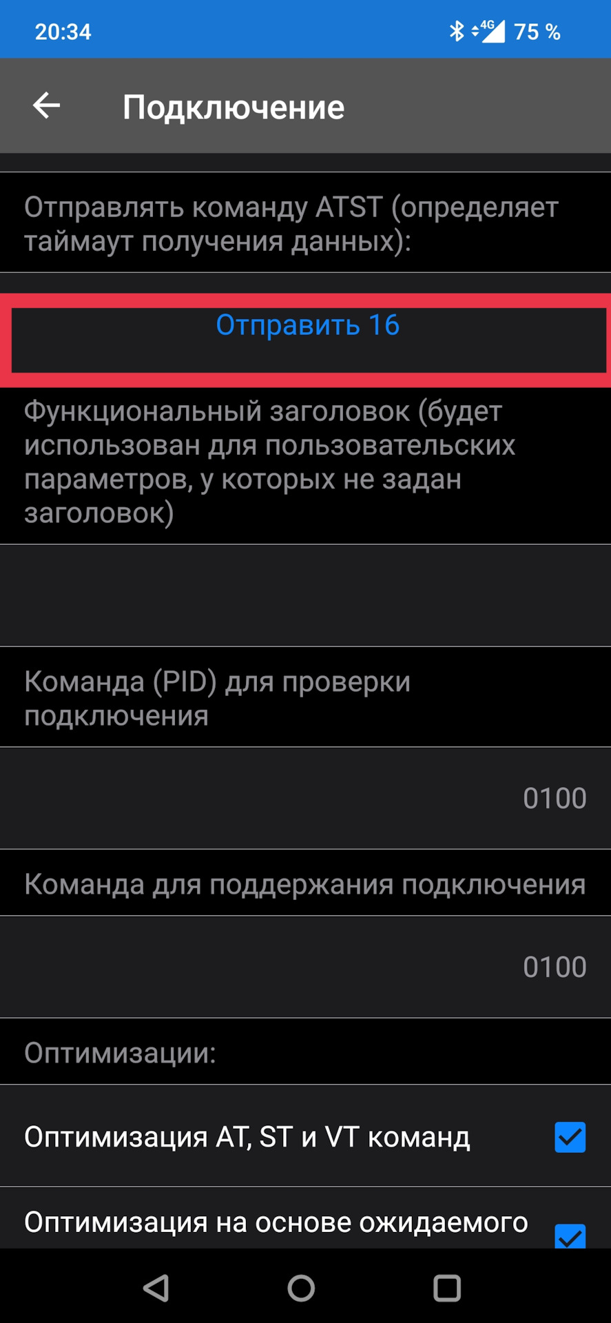 Отправлять команду ATST: выберите 16