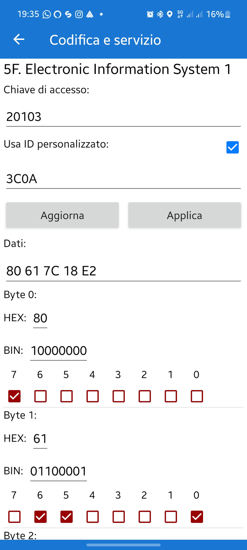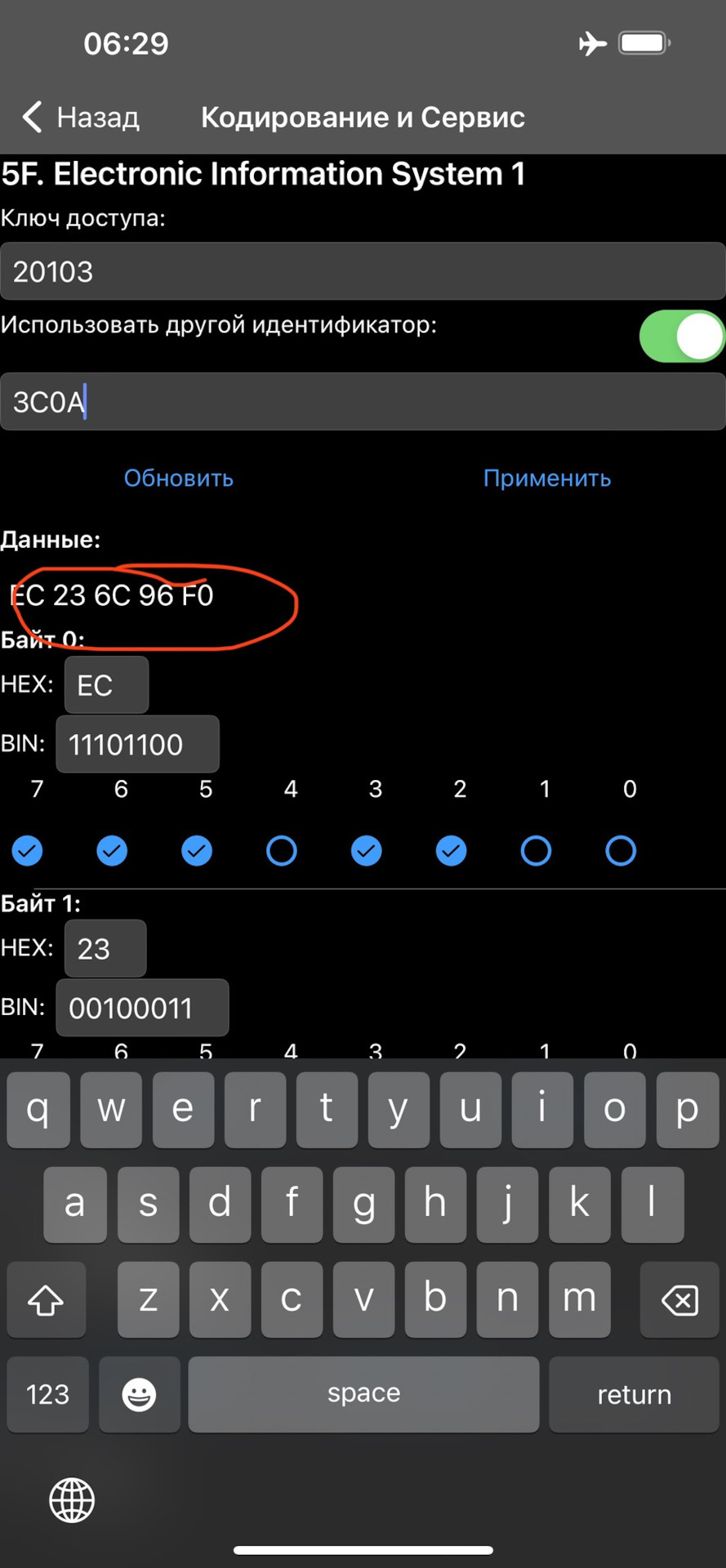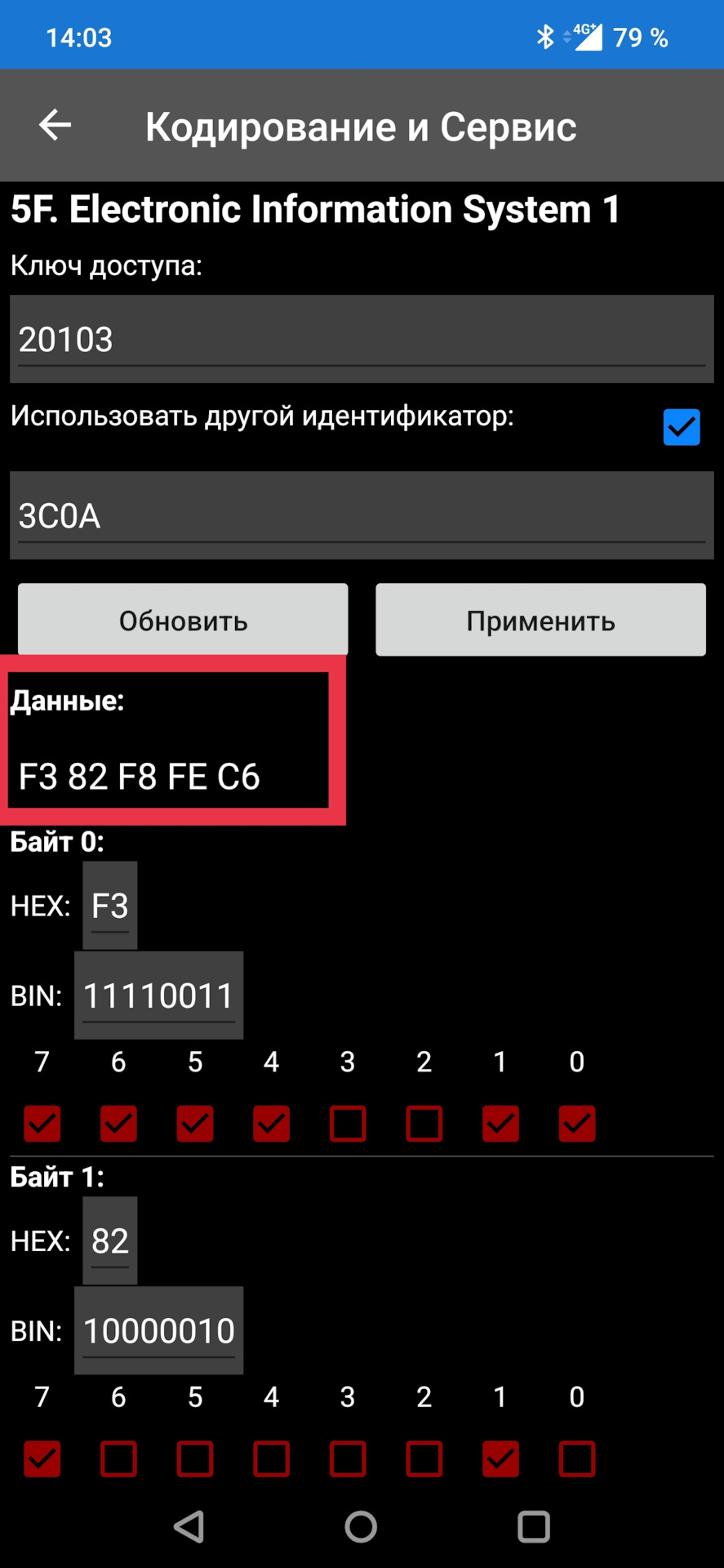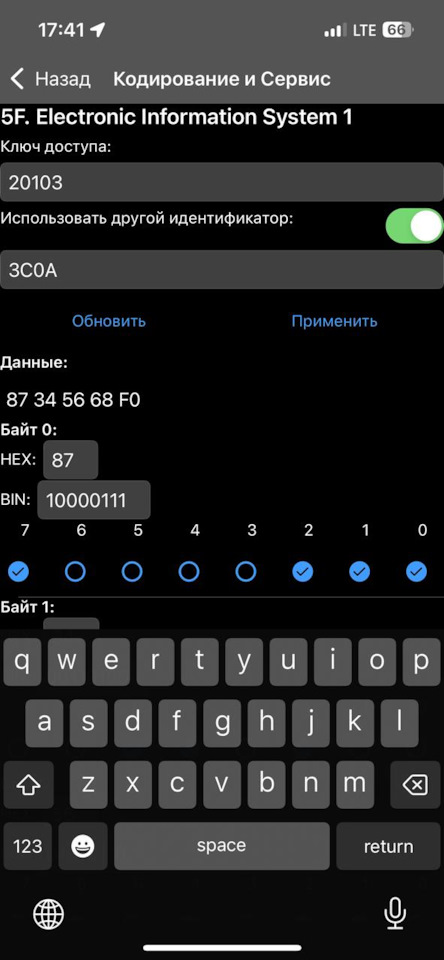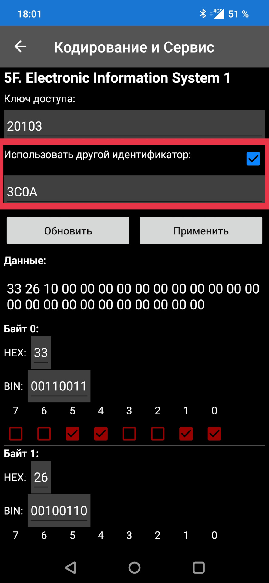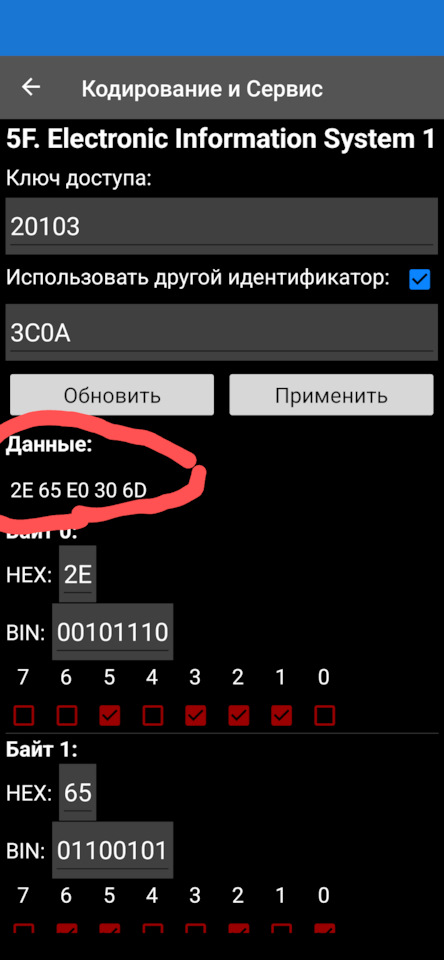 "…Длинное кодирование — блок 5F — поставить галочку "Другой идентификатор." у меня этого раздела нет в carscaner. Это раздел только в платной версии есть?