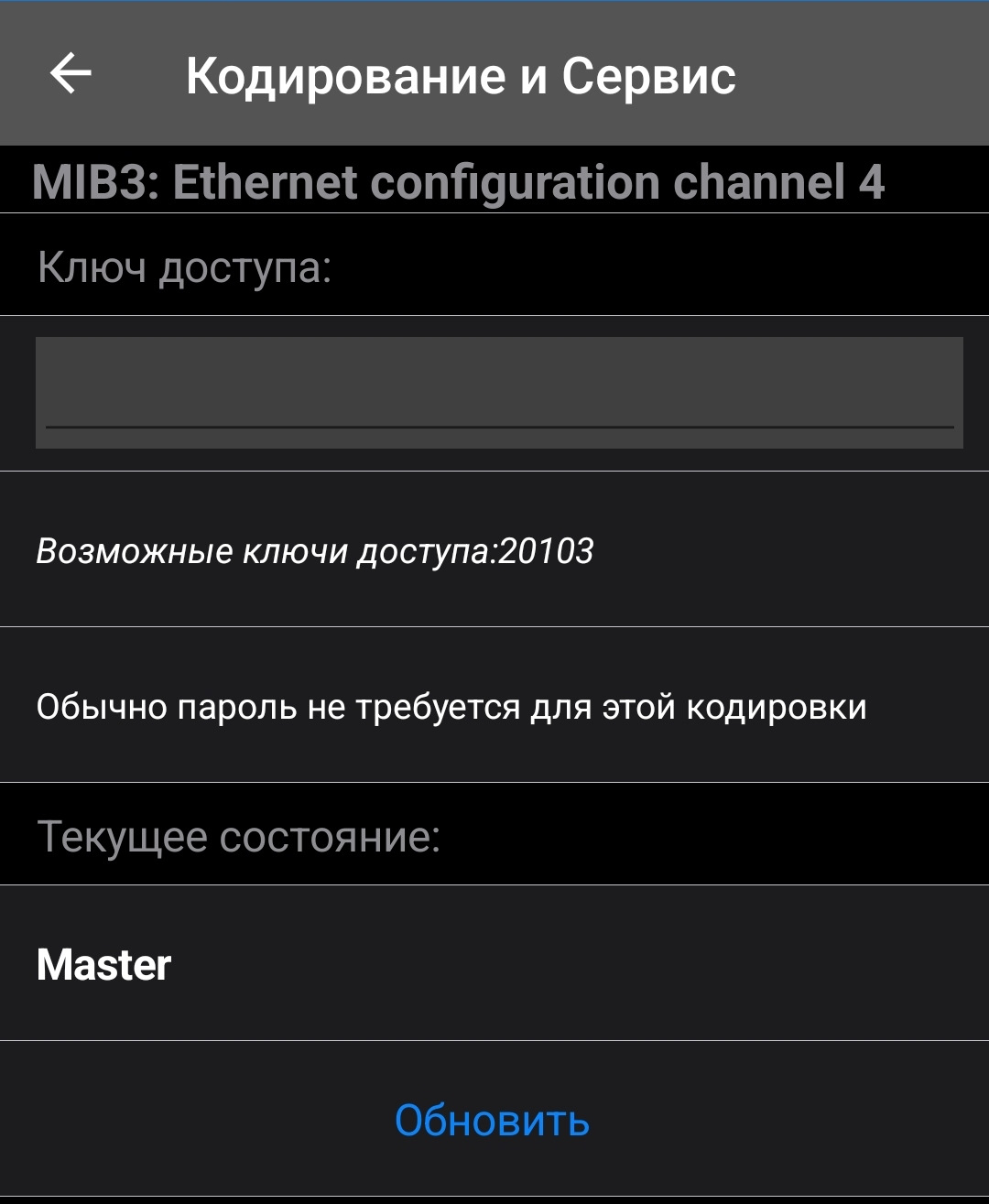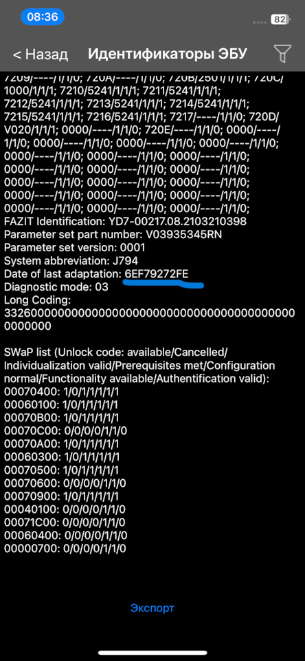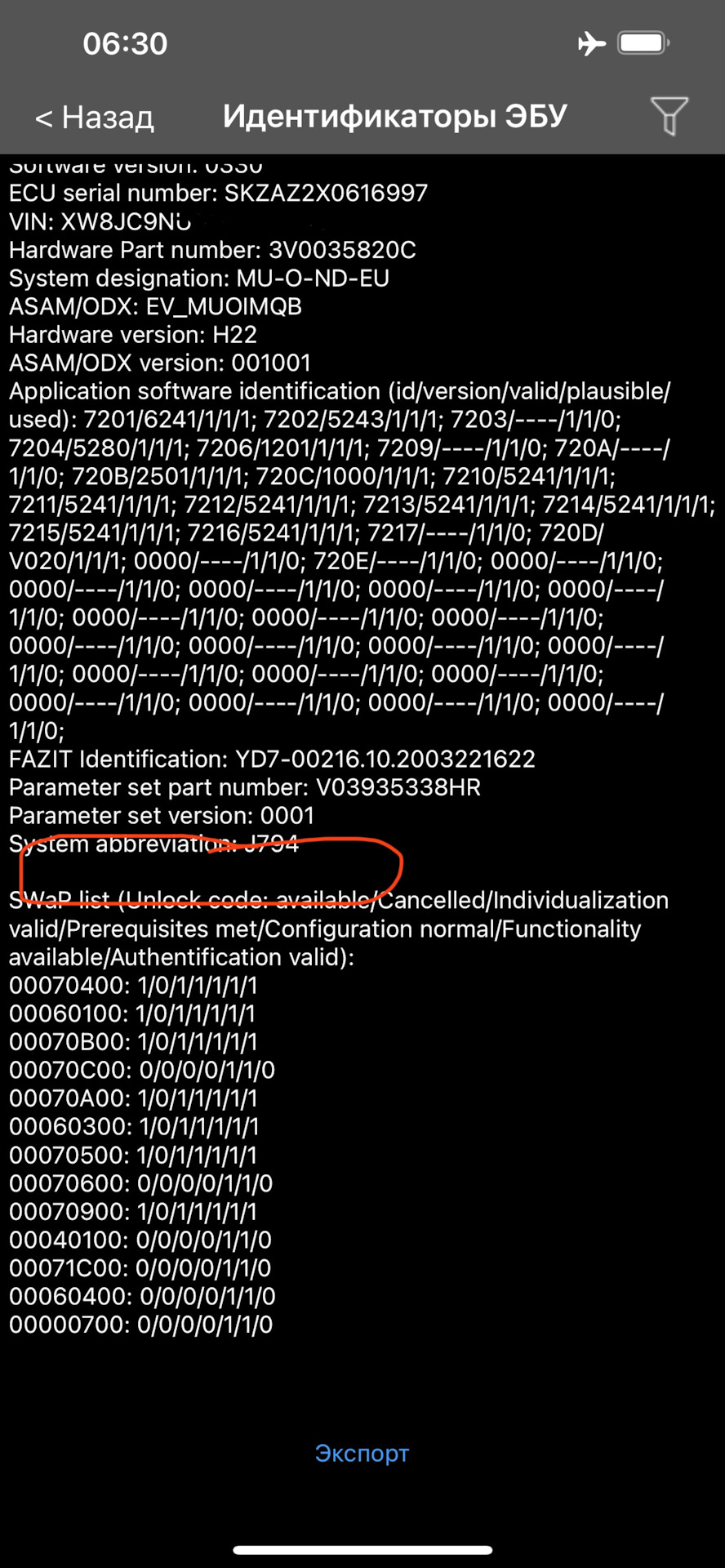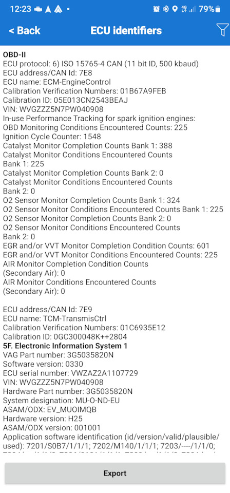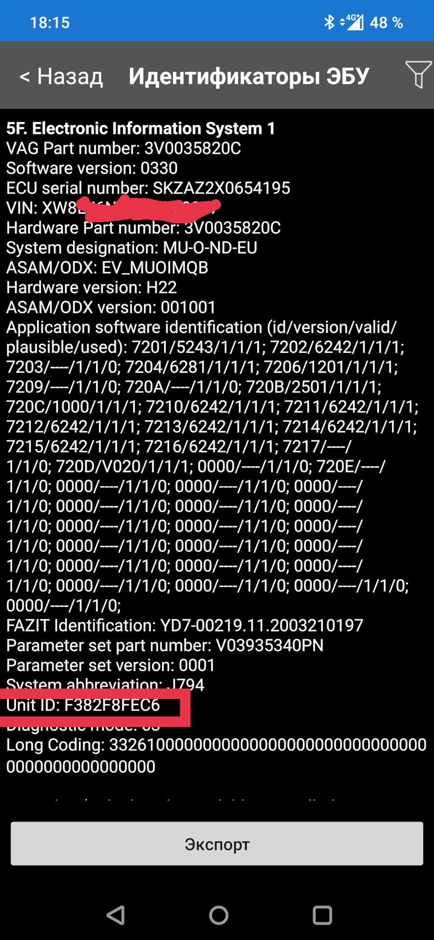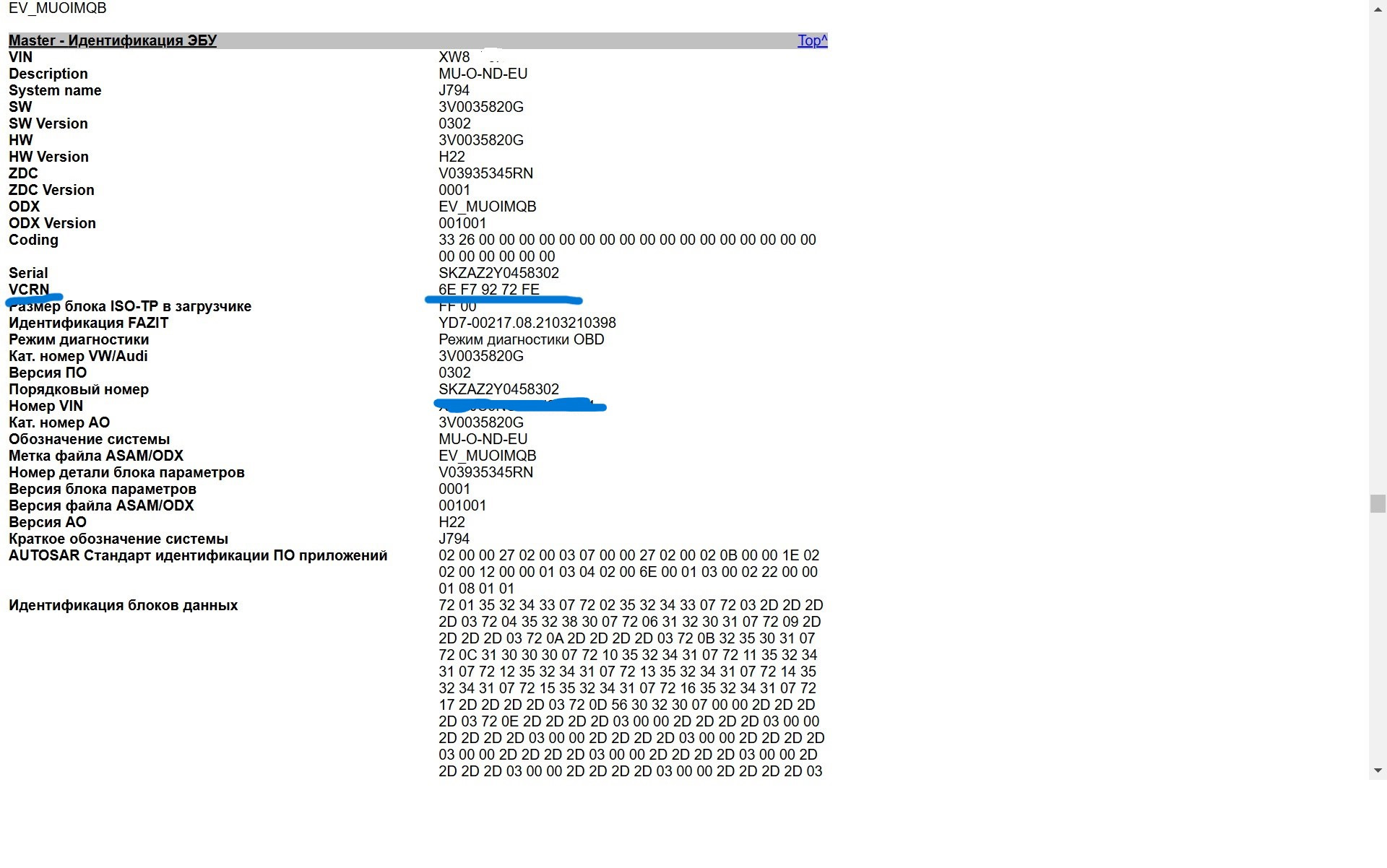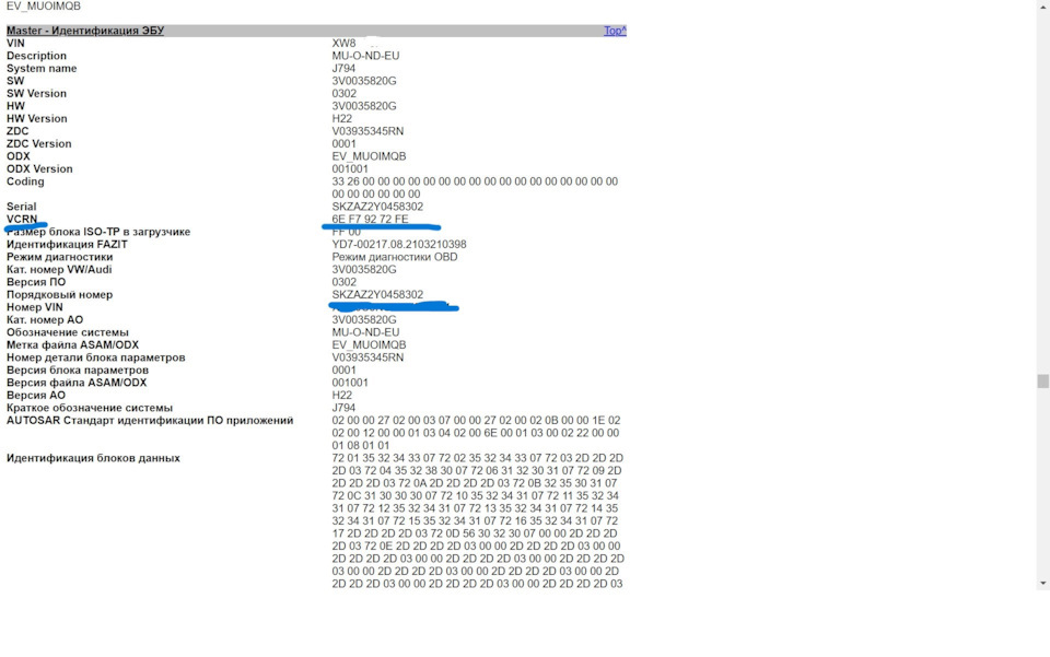 Приветствую. Вроде сделал как вы написали, но у меня выводится VCRN уже на первом шаге (если это оно). А при переходе в "идентификаторы ЭБУ" пусто.