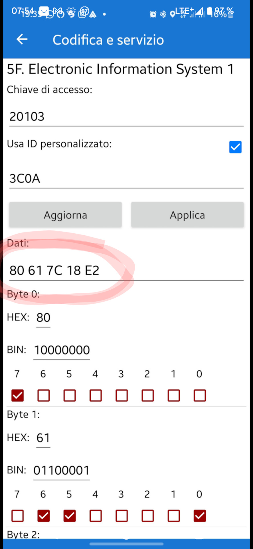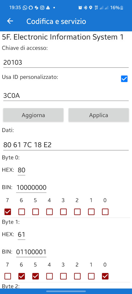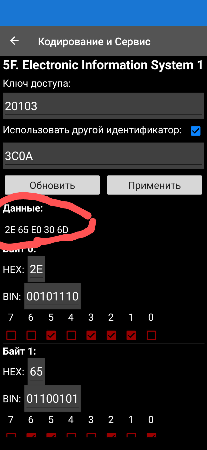 Я сделал, потом повторил это: зайти в длинное кодирование — блок 5F — поставить галочку "Другой идентификатор" и в появившемся поле ввести 3C0A, после чего нажать "Обновить".