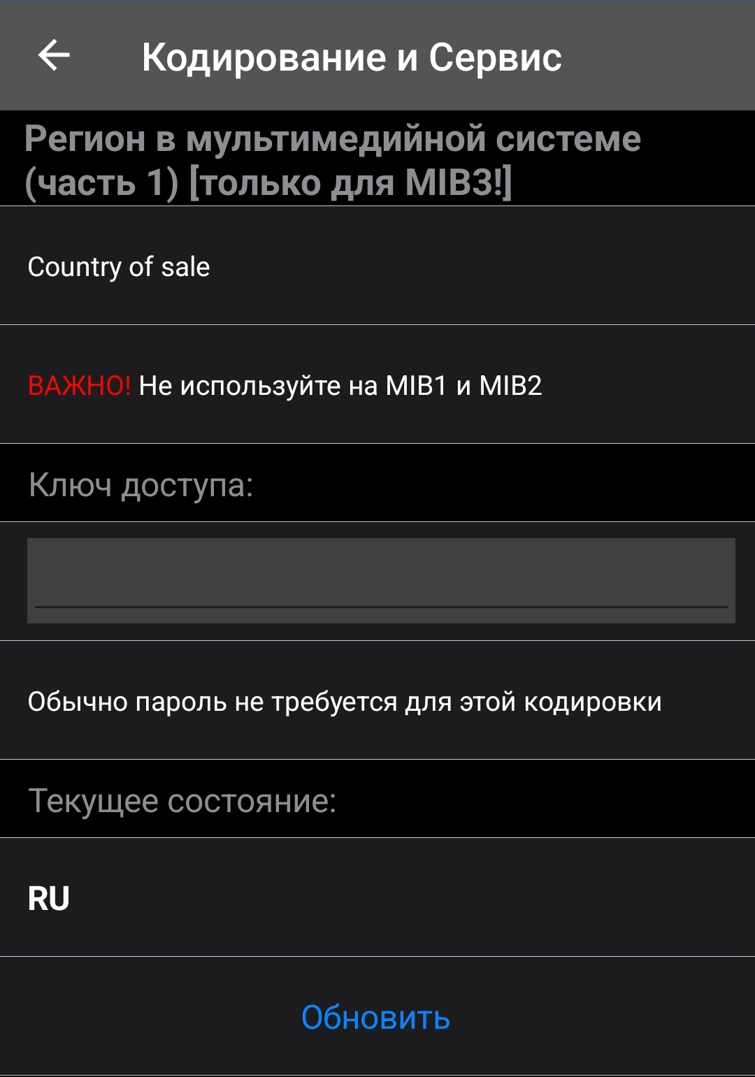 Хотел посмотреть свой VCRN через сервисное меню в разделе коды функций (FEC, SWaP) нажав на любой из инсталлированных кодов, но там VCRN: 1234 показывает.