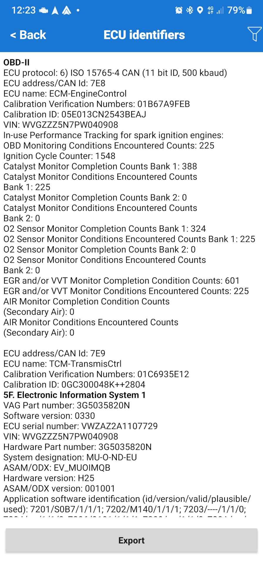 So I connected to carscanner and tried looking in the ECU information for module 5F.