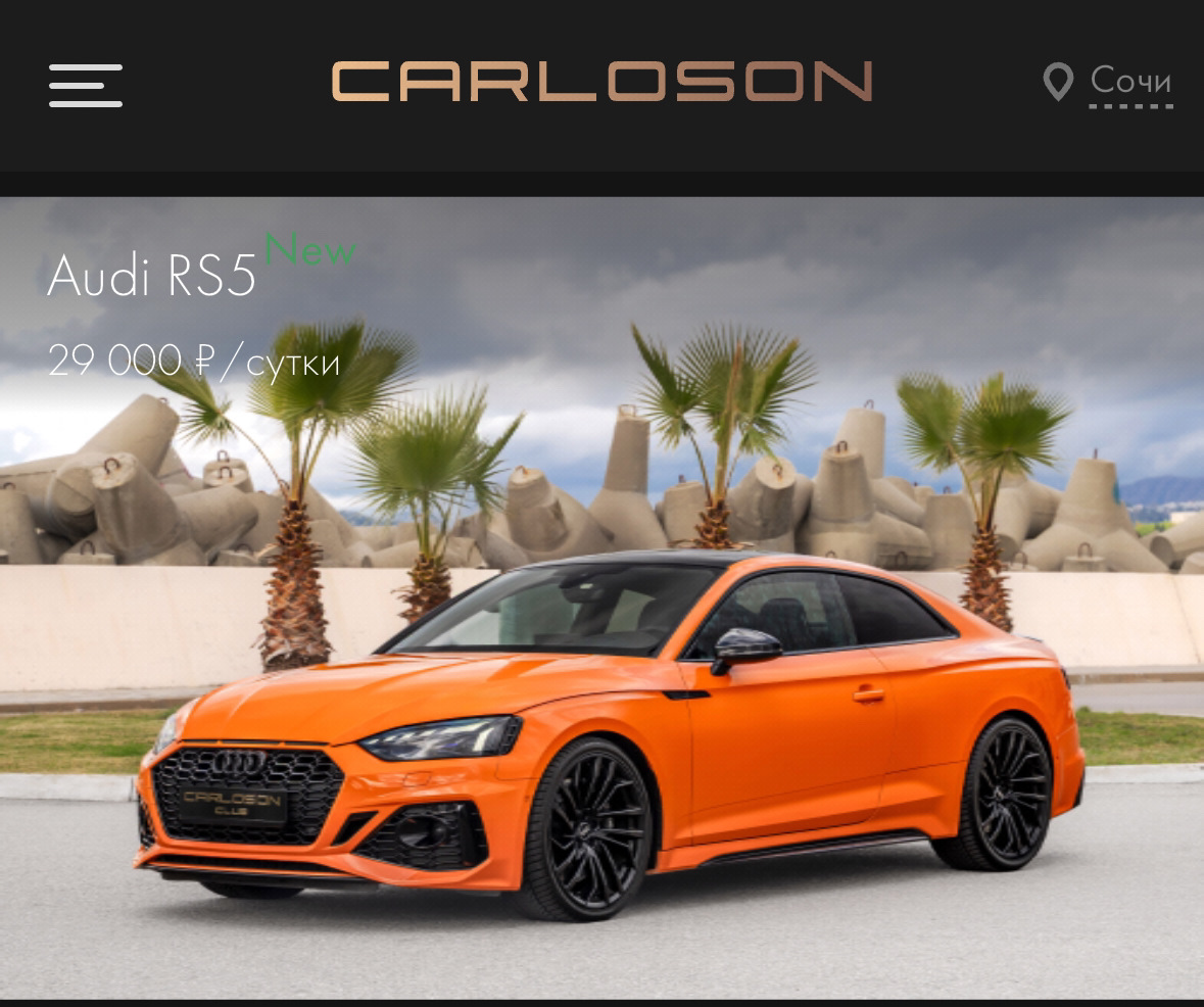 RS5 в прокате практически нет, есть один в СПб и совсем недавно один появился в Сочи у Carloson Club.