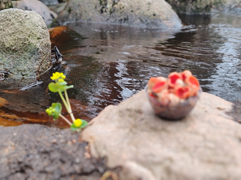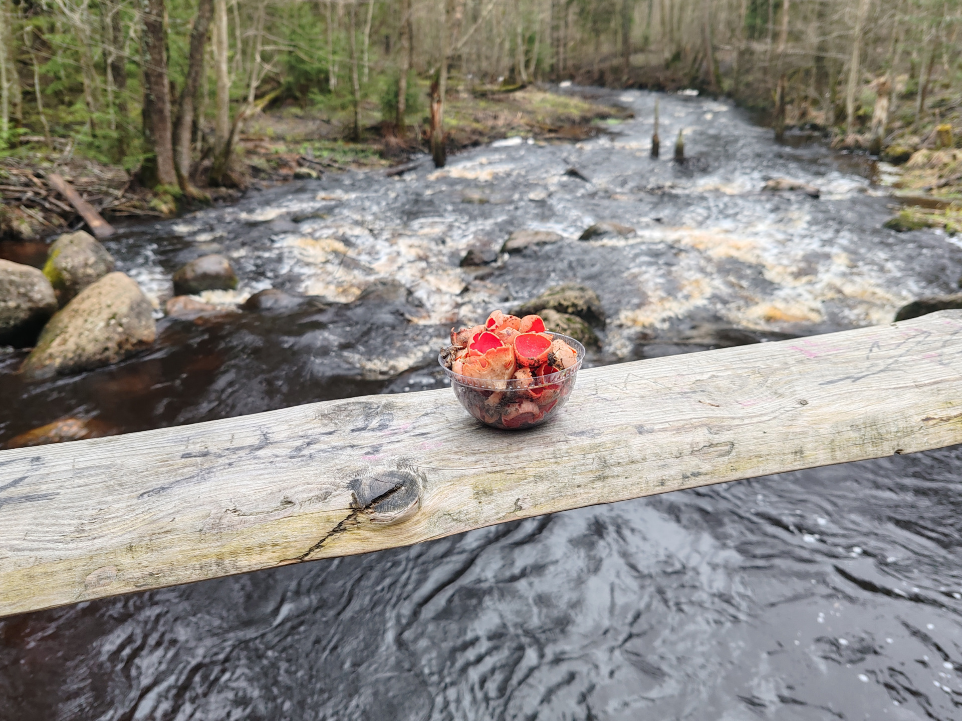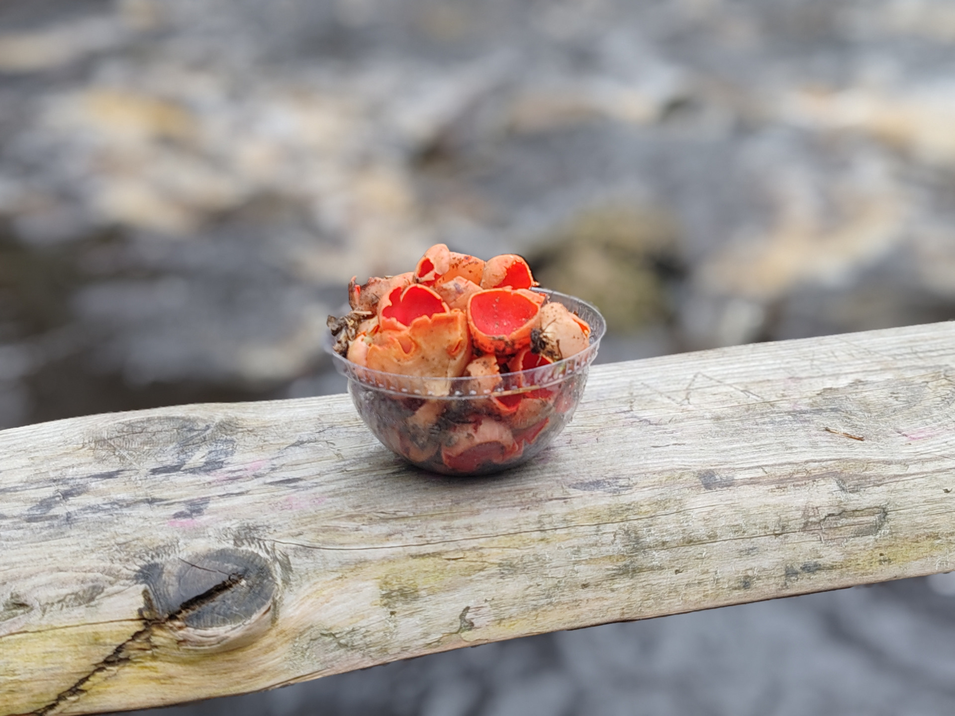 "Алая эльфова чаша", Саркосцифа (лат. Sarcoscypha), весенний ярко-алый гриб, на вкус как жареная копченая колбаса, только ради новых вкусовых ощущений стоит поисков и сложного приготовления. Мой совет по чистке — вы же все равно погуглили что это за гриб — овощечисткой срезать пленку под хрящеватой шляпкой. Давно живешь и все уже знаешь — а хрен там) вкусно нет слов