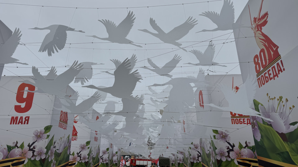 Ну, что ж! В этом году на парад мы не попали, к сожалению. Успеть — успели, но прорваться к местности, где было бы хорошо видно — не смогли. Сами понимаете: большой город, много жителей, гостей и туристов. Стояли даже на выносных подоконниках близлежащих домов! Куда уж там нам, простым людям. Не культурно взрослым людям пытаться заниматься паркуром…