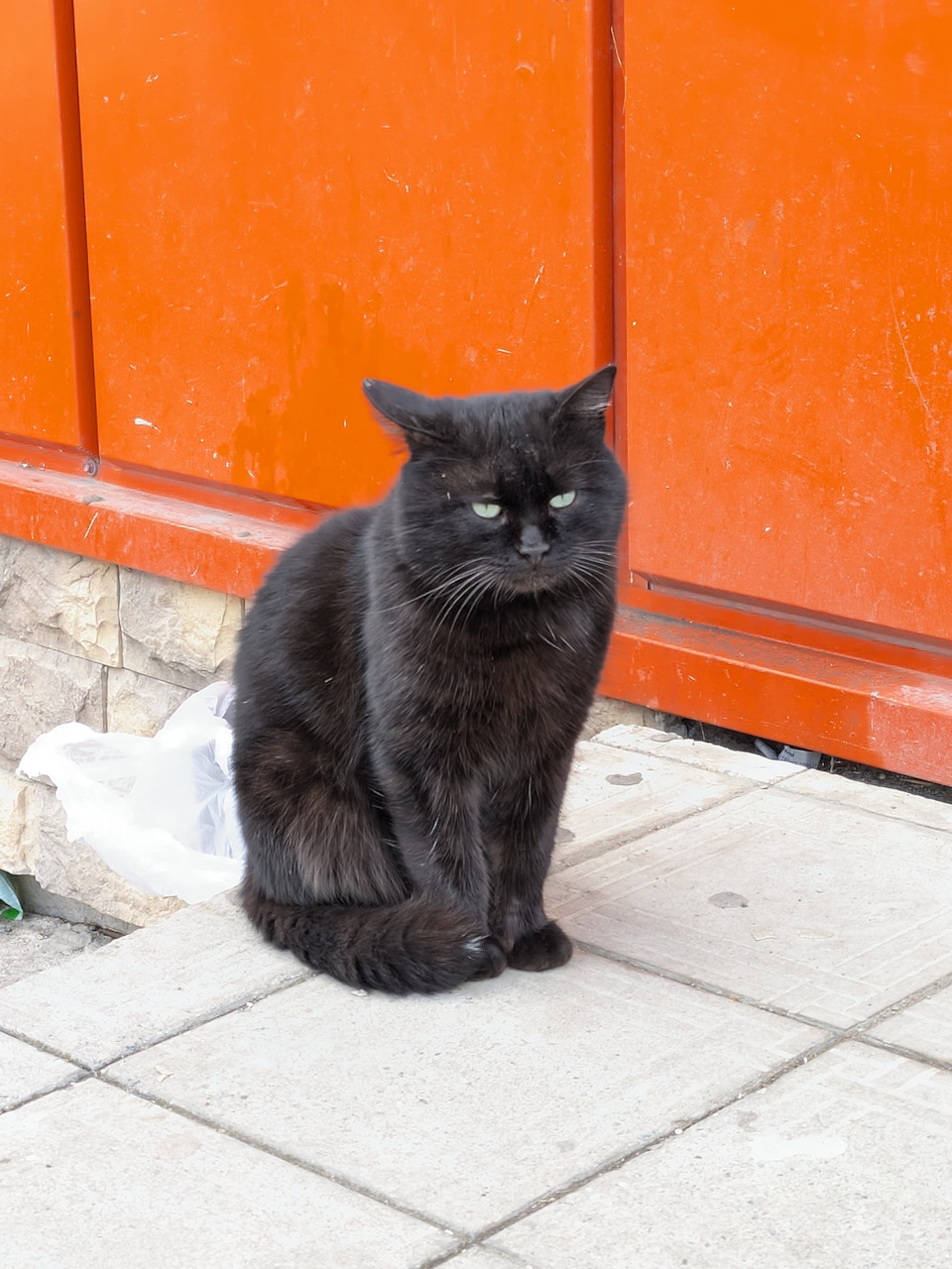 Кот этот в своем роде уникален (по моему мнению) поскольку прошлой осенью во двор подкинули маленького черного же котенка, а вот эта морда его воспитывала и защищала. Когда им корм перепадал, он сидел и охранял, пока мелкая (как оказалось котенок вырос в молодую кошечку) ела. Ну и так я его встречал часто, он тут по дворам гуляет, то там покормят, то здесь. Кот спокойный, приличный. Несколько фото, в разное время.