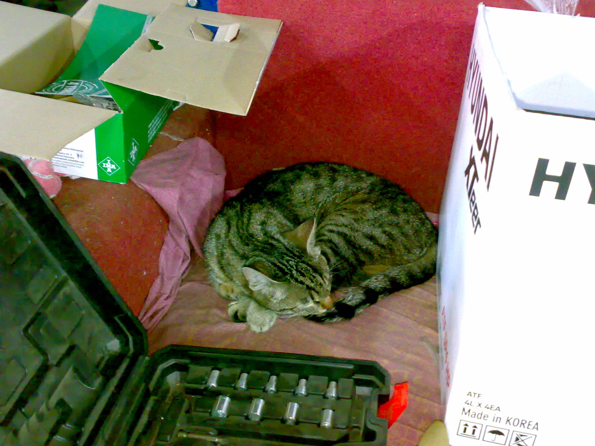 Вот там, где он постоянно попадал в кадр- зоомагазин, в котором его подкармливают. В общем- кайфует кот.