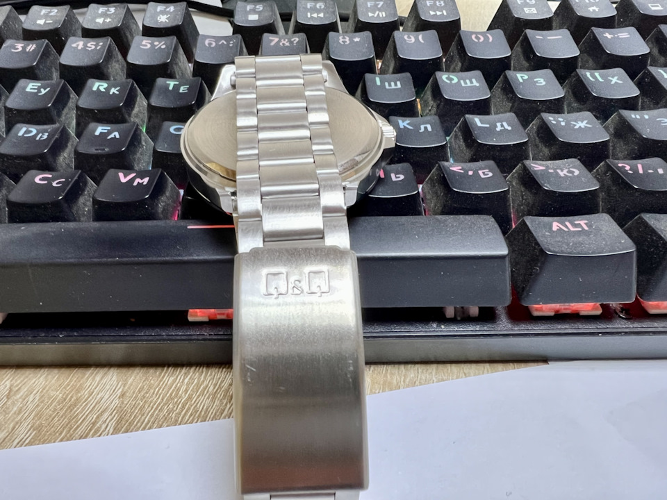 Очень понравился полированный стальной корпус, с таким видос ремешком сталкиваюсь впервые, на них нет штырей, укорачиваются ааа то иначе, еще не разобрался)