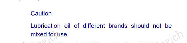 "Смазочные масла разных марок нельзя смешивать при использовании."