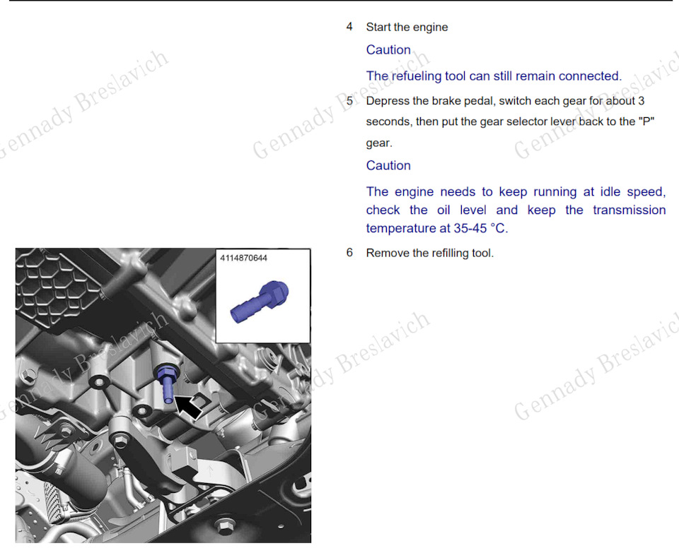 Двигатель должен работать на холостом ходу, необходимо следить за уровнем масла и поддерживать температуру трансмиссии в пределах 35-45 градусов цельсия.