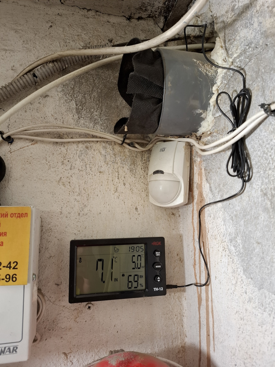 Далее установил RGK TH-12 и вывел выносной датчик на улицу.