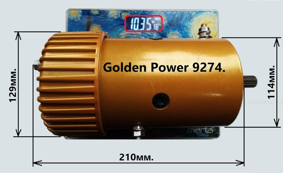 2. Golden Power 9274. Моторы универсальные, ставятся на многие известные спортивные лебедки, без каких либо доработок! Обороты моторов средние между 10000 и 11000 об/мин. На весы надавили как и должны были надавить 21-21,5кг.