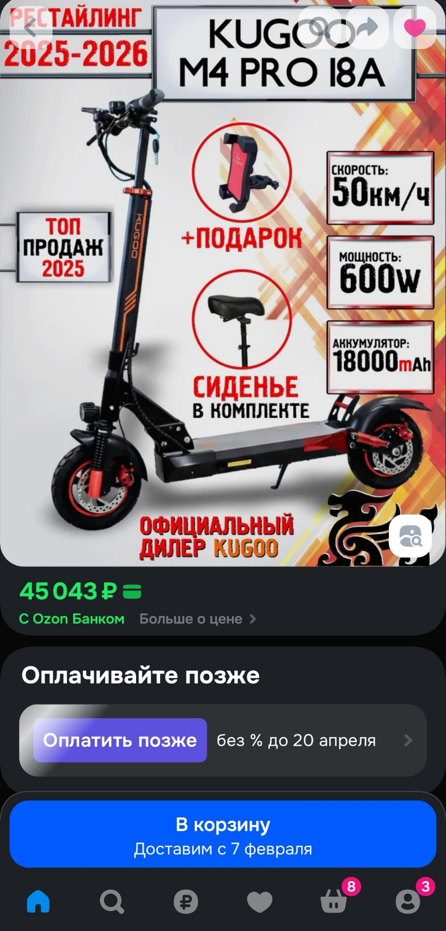 Если руки из правильного места по электронике и хотя бы замена колодок самостоятельная то тебе можно взять б.у. есть знакомый у него kugo v1 так вот постоянно какие то поломки. Колодки задние расходник, цена около 500 р, замена 1000 в сервисе. Провода от кнопки питания до АКБ через неделю в обрыв, цены на электрику самокатов вообще оглохнешь, да ещё и очередь на 3 дня вперёд как он сказал. Задняя каретка звёздочки уже приехала, развалилась, менял вот ему, цепь вытянулась, руль переломилось крепление снизу от вилки, цена 7500 на новый руль. Я а#уел даже если менять самому то я скажу не дешёвое это удовольствие 😄содержать самокат. Или ездить год и на авито его и идти за новым . Про камеры и покрышки молчу. Бери лисапед и ноги работают и выглядишь как человек со стороны 👍