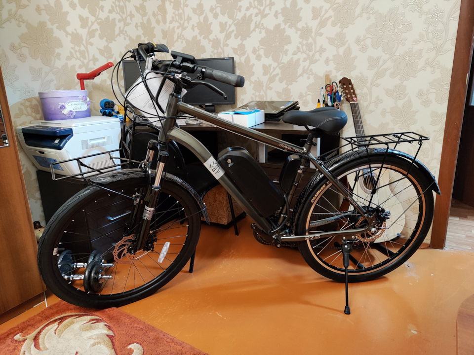 Он ставил передней колесо электро. Заднее осталось родное с цепью