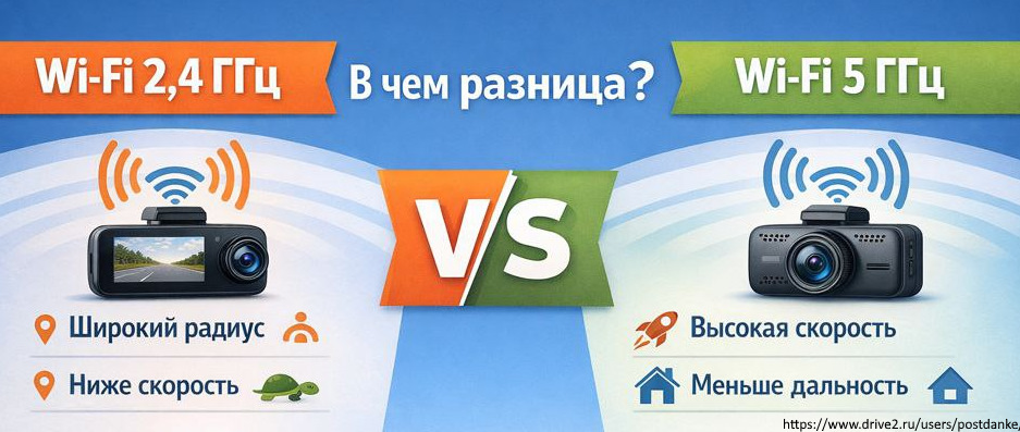 В последнее время всё чаще встречаются видеорегистраторы с Wi-Fi-модулем на частоте 5 ГГц, тогда как большинство моделей используют стандартную частоту 2,4 ГГц.