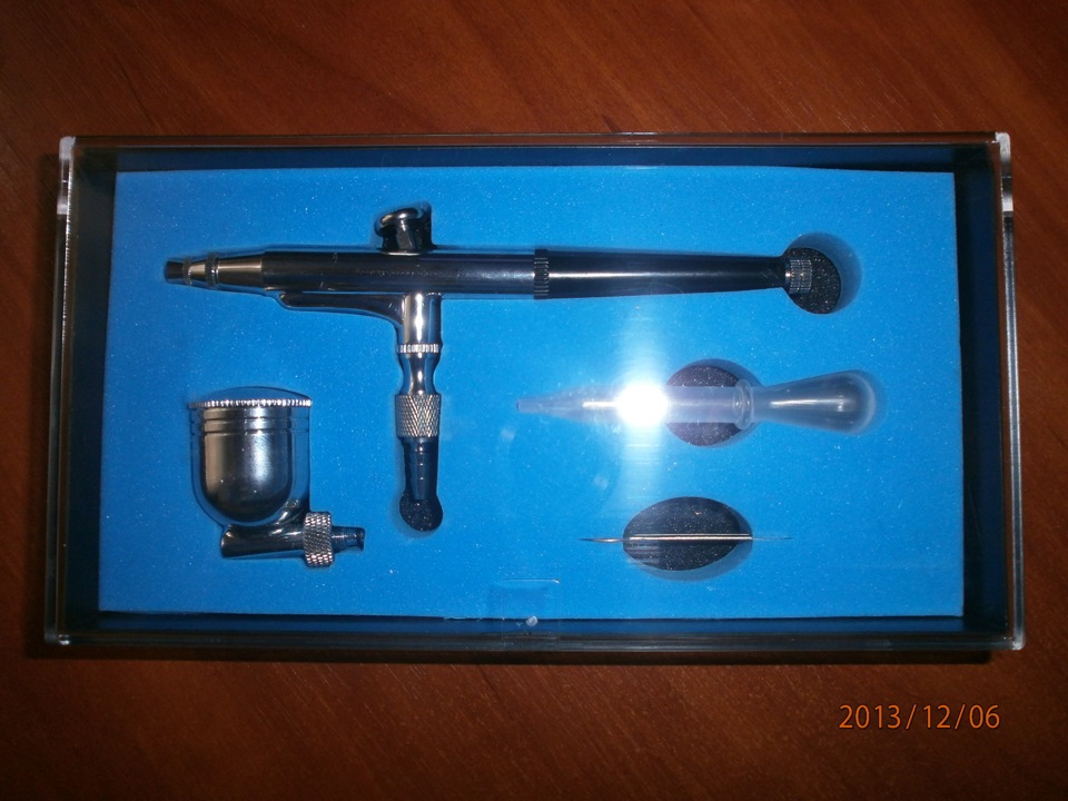 Тогда всё намного проще : нужен недорогой аэрограф с соплом 0.8 мм ( до 100 гривен) и миникомпрессор к нему ( в бюджете 100 у.е. неплохой выйдет) Вот и будет инструмент для окраса маленьких деталей.
