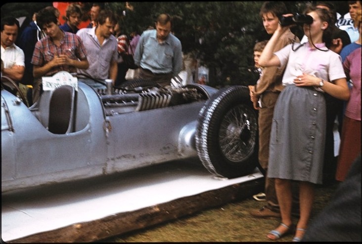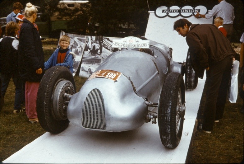 Словом, нам удалось привести автомобиль в более-менее пристойный вид и в сентябре 1977 года показать его публике, которой на Бикерниекской трассе собралось семьдесят с лишним тысяч. Сначала протащили "Ауто Унион" несколько кругов на веревке. А на прямой "старт-финиш" ребята отцепили меня, я отпустил педаль сцепления, и машина на второй передаче завелась. Проехал я метров триста, но чувство было бесподобное. Представьте: за спиной, как Домский орган, гудят шестнадцать цилиндров!
