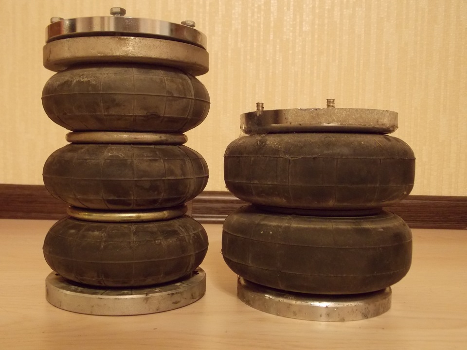 Поэтому и будет немного жёстче.Я тоже хотел стойки с Япии для своей машины взять, но так как подушки потом покупать, за треть цены комплекта, как то передумал, собрал сам.Перед Скания, зад Рубена с доп. ресивером.
