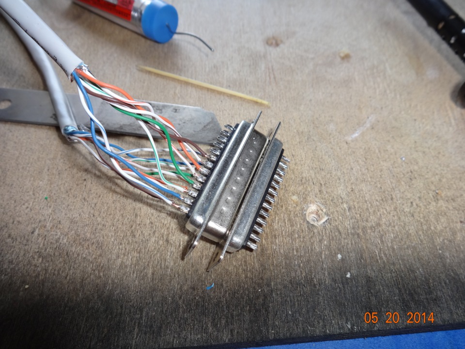 Жестоко витую пару на такие контакты паять). Если рассуждать конструктивно, то шнур DVI куда лучше бы подошёл, в компьютерном магазине 100 рублей. Разрезаем пополам, вот тебе готовые папа/мама с припаянными гибкими проводами… Главное провода не перепутать их там штук 18 примерно (не проверял)… А вообще молодец, мало кто так заморачивается.