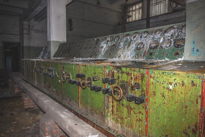 5. помещение для вентиляции6. тепловой пункт. Вдаль уходит коридор теплотрассы, который уходит в сторону уже снесенных цехов7. Пульт управления поражал своими масштабами8. Одновременно он поражал своей несовременностью9. Здесь сохранился станок10. Заглянули на склад, посмотрели множество шкафов для запчастей сейчас абсолютно пустых11. Так как аккумуляторы делали свинцово-кислотными при цехе была небольшая хим. лаборатория.12. Керамическая печь и всякие приборы13. Переместимся в административную часть, правительственные лимузины когда-то были гордостью завода14.В инженерном отделе навсегда замерла линейка Кульмана15. Раздевалки и душевые для рабочих16. Здесь время остановилось17.18.19.20.